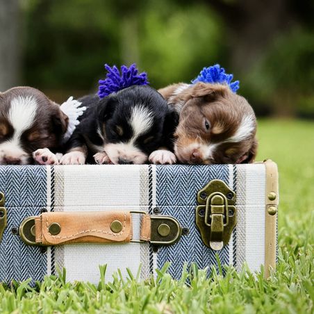 “When you choose to bring a Miniature Australian Shepherd puppy from Triple Lake Ranch into your family, you're not just buying a pet, you're investing in a companion that has been nurtured with utmost care and dedication. Our pricing reflects the comprehensive health testing we conduct, the assisted labor and deliveries we facilitate, and the unique curriculum that we initiate when the puppies are just 3 days old. We ensure daily handling exercises, puppy pre-school, and meticulous daily monitoring of weights to ensure all puppies are thriving. Before your puppy comes home, they undergo a vet clearance, receive their first vaccine, are dewormed, and microchipped. But our commitment doesn't end there. We provide lifetime support on nutrition, training, and problem-solving to help you raise a healthy and happy pet. We also kickstart crate training and potty training, and provide a helpful book to assist you in integrating your new puppy into your family. At Triple Lake Ranch, we believe in providing more than just a pet, we deliver a lifetime companion. ”