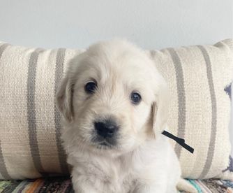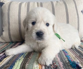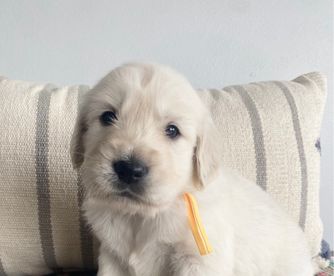 “Our English Cream Golden Retriever puppies are raised in our home with the very best attention and care! We play with and hold them daily. Not for current litter.”