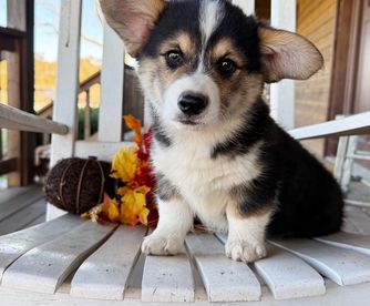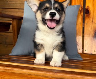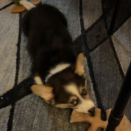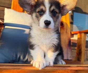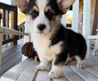 It was very apparent that Amy loves her corgis. She made the process of acquiring my corgi from her very easy. She also was wonderful in driving 2 hours towards me to exchange the dog to me. We met in a park and she shared stories about him and his lineage. And 2 weeks later she continues to correspond in a kind and caring matter. As for the puppy. He is about the cutest puppy ever. He was awesome on the 8 hour drive home and has continued to be a bright happy spirit. Potty training is a bit challenging with a 3 month puppy but he's making progress. I have a 7 year old husky/shepherd and an 8 year old yellow lab. The puppy fit in with them within 2 days!!! He particularly likes the labrador! And most importantly he has brought me the laughter only a corgi can deliver. Corgis see the world differently than other dogs and I love it!!! Thanks Amy!!! PS: I recommend getting a dog by car. He experienced so little stress in the process.