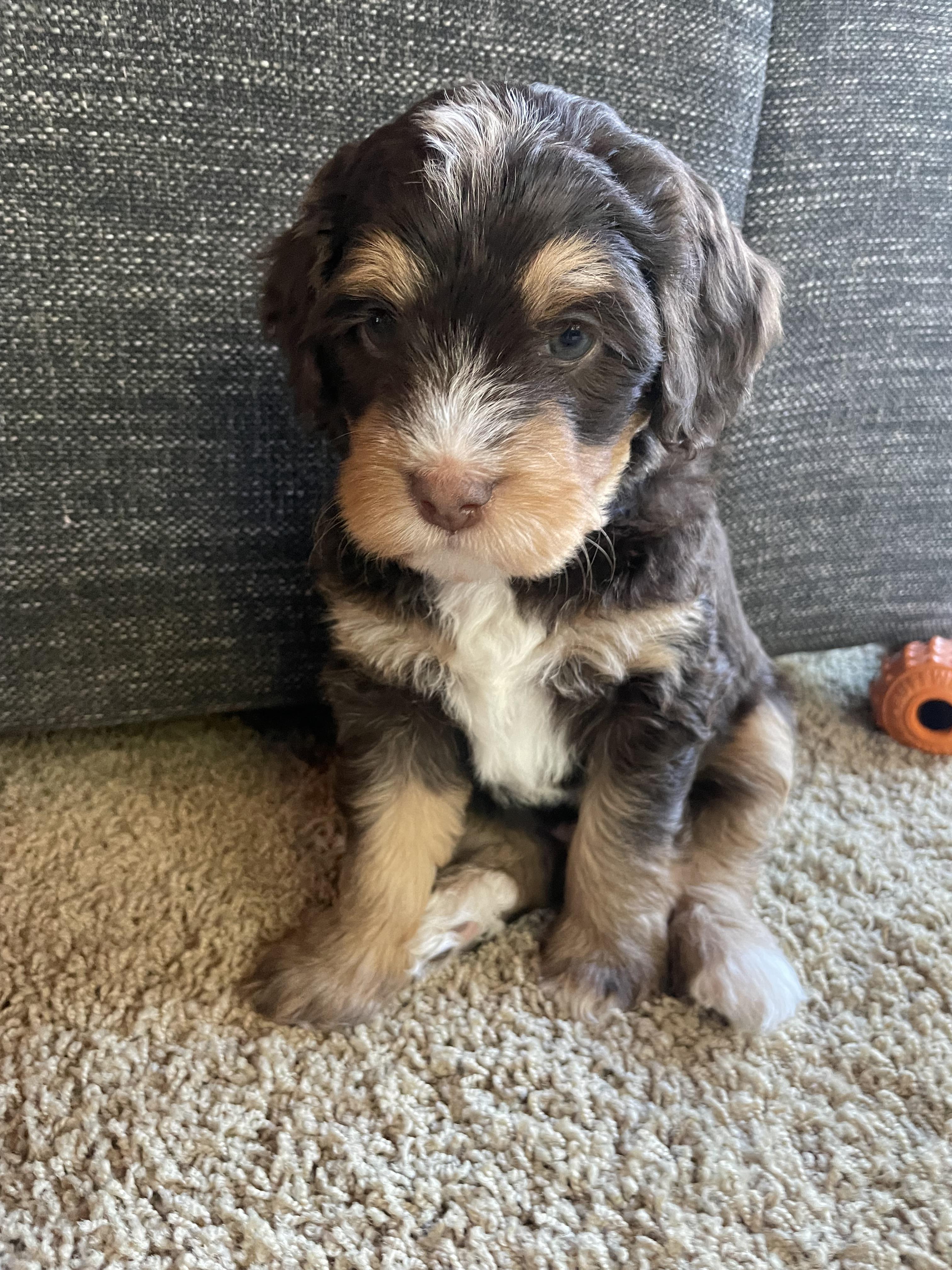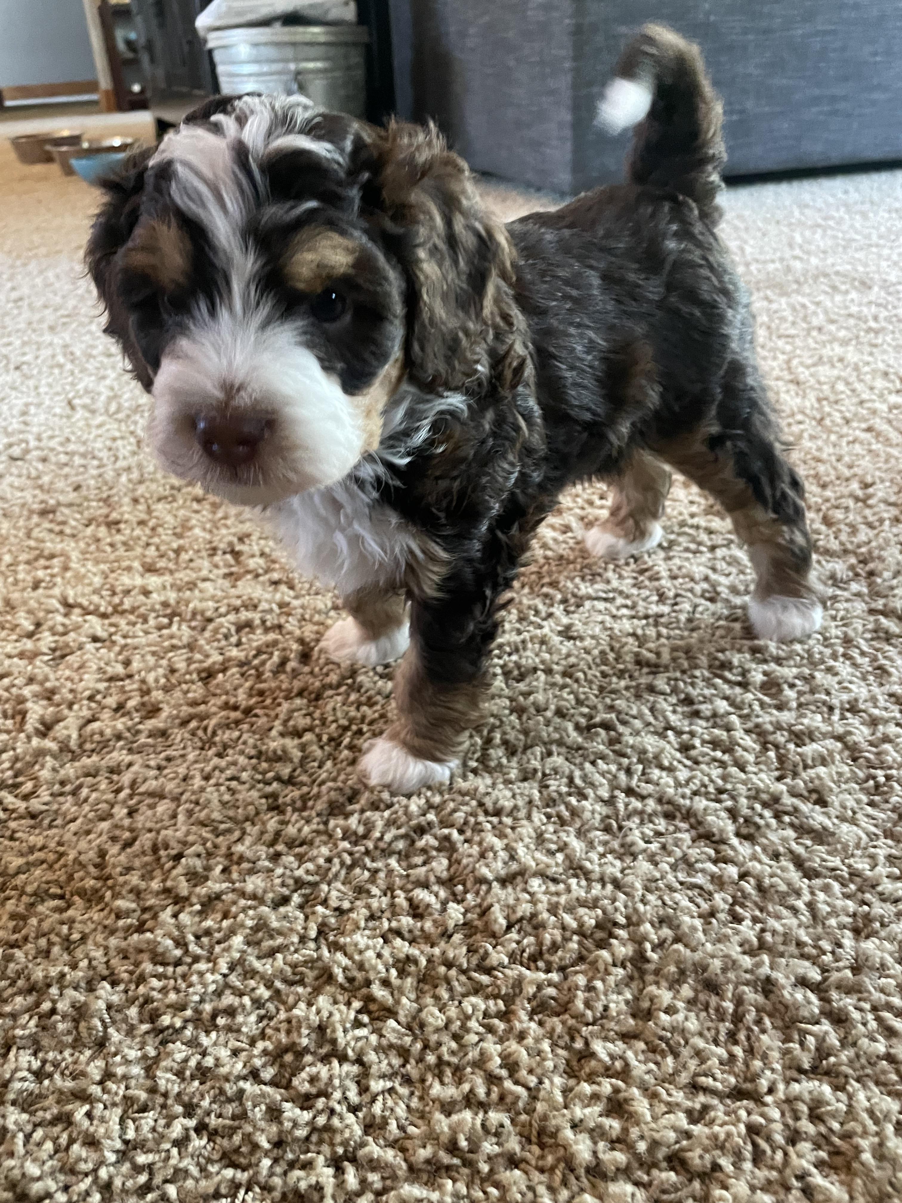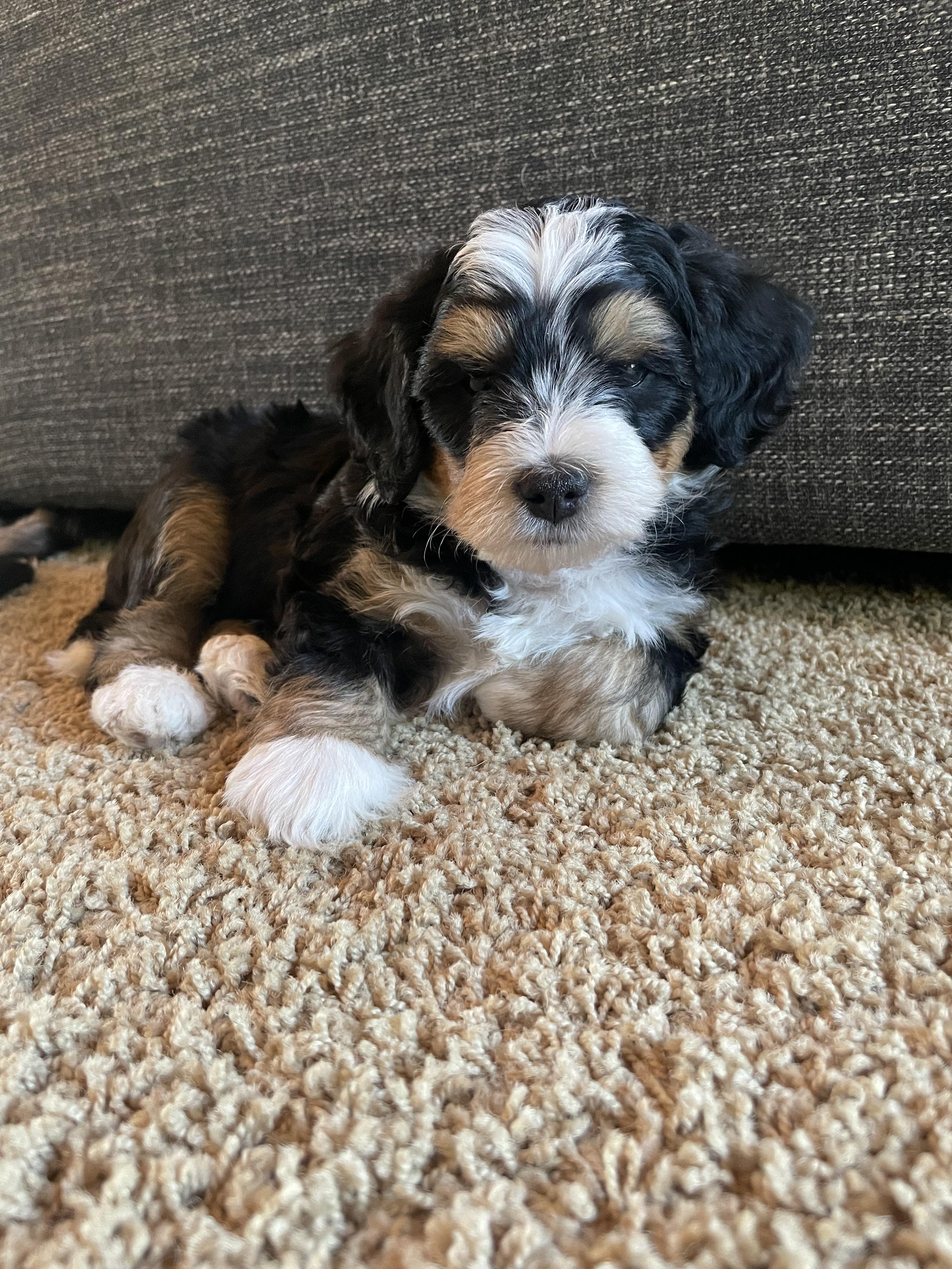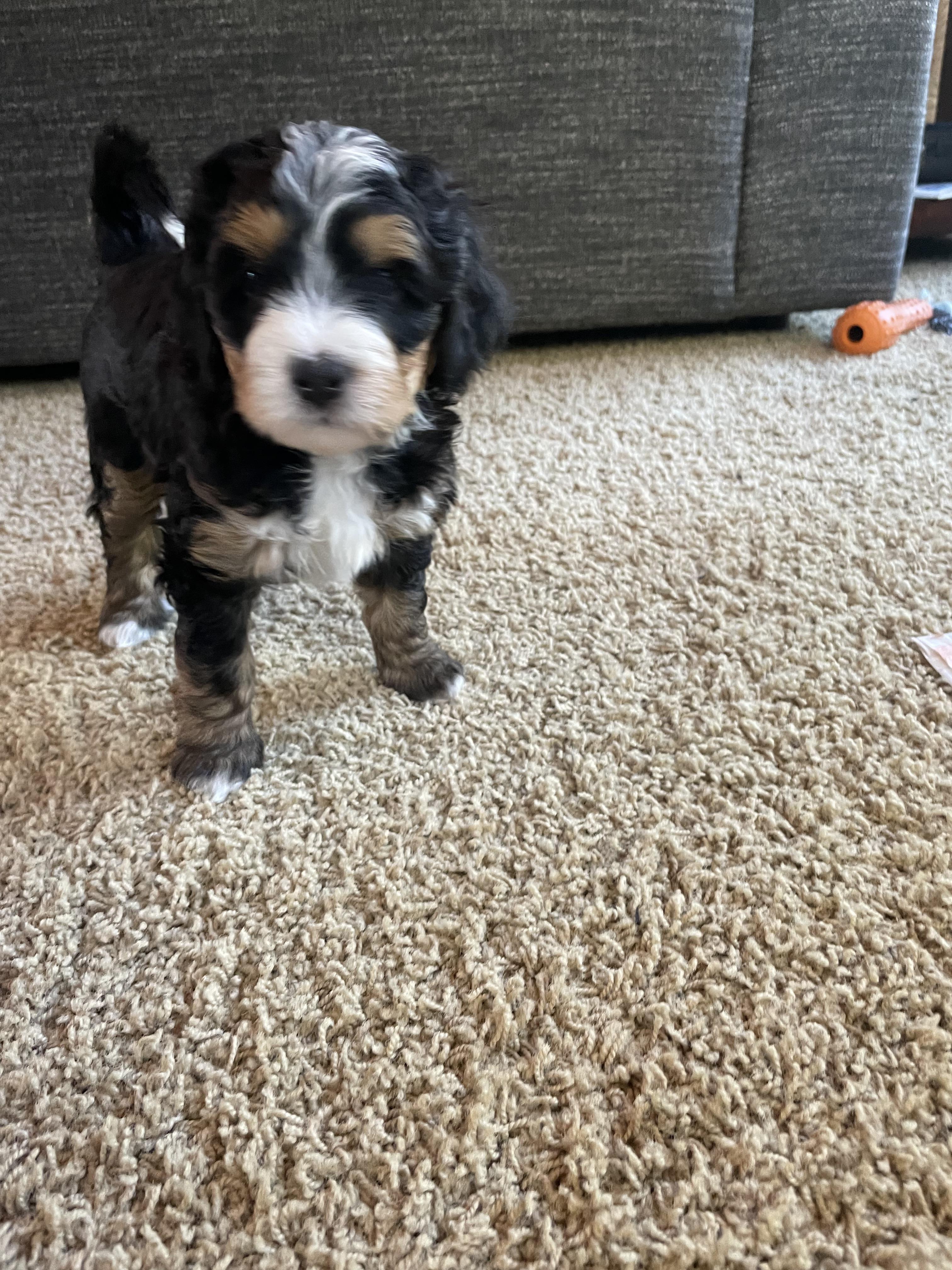Roxie is a female Bernedoodle. Carefully selected as a great representative of her breed, Damon decided to make her part of their program. Damon has passed Good Dog’s screening process, which involved a review of their breeding practices, environment, and the mental and physical health of their dogs.