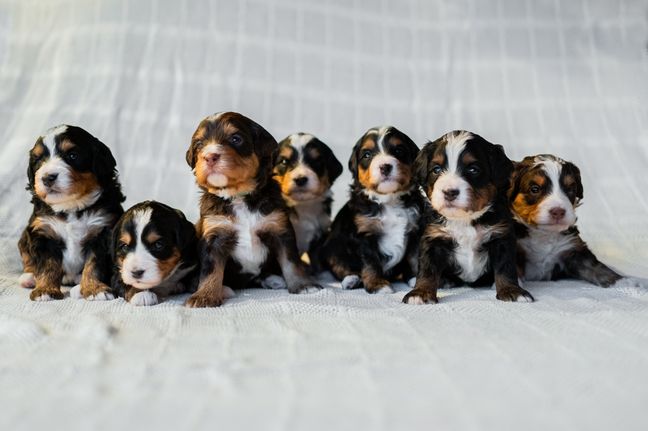 Our puppies are tri-color. Colors will vary depending on the parent dogs.