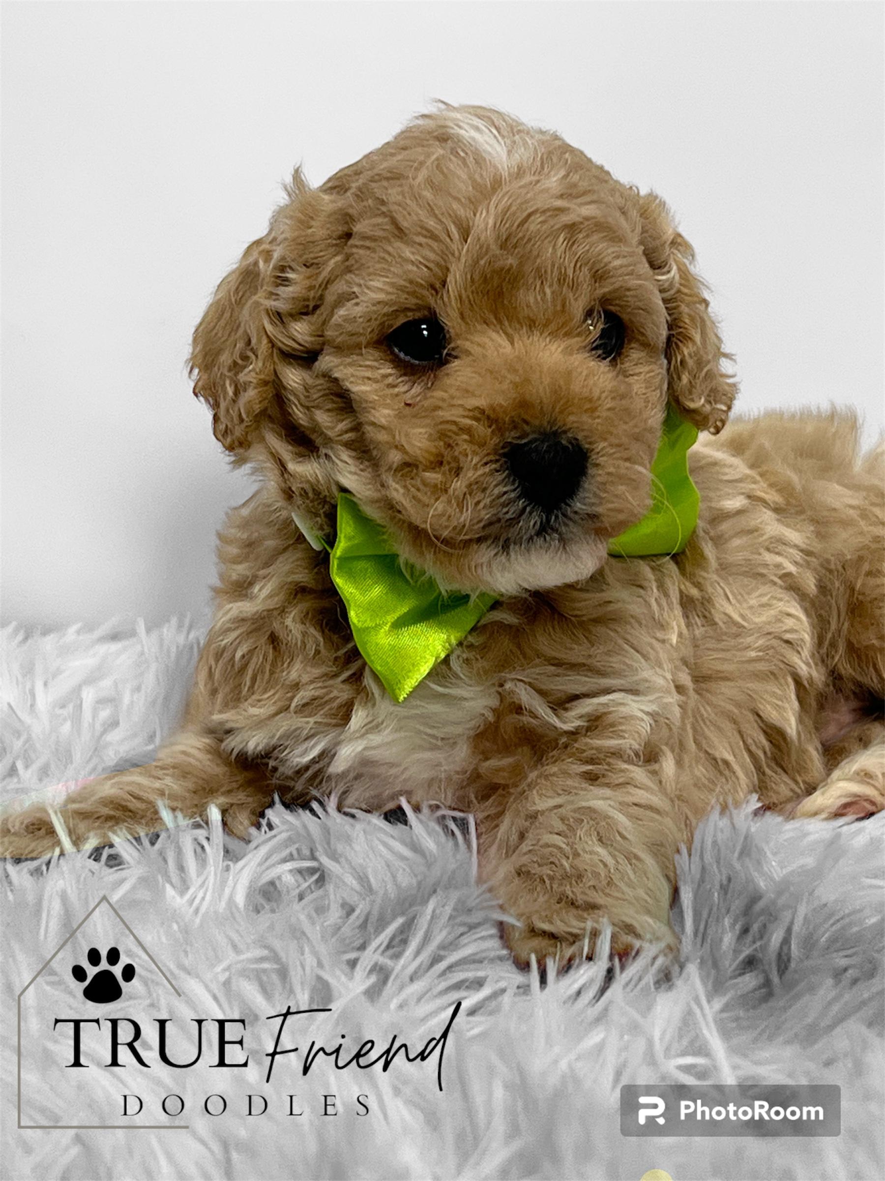 We’ve been searching for a puppy to join our family for quite sometime. We found True Friend Doodles on gooddog.com and were so happy we did. We FaceTimed the owner Daniele and she introduced us to Lenny and we fell in love. She was very responsive to all of our questions and continued to update us often on his progress throughout the days with pics and videos on posted on Facebook. Danielle also showed us different ways she has introduced the puppies to different noises, playing with kids, and around her own dogs in the house. She sent DNA testing of mom, dad and even grandma! Lenny is very mild tempered, funny, sweet and part of our family. The 5 hour drive home was well worth it ! We are thankful for finding Daniele and would recommend her as she is a breeder who you can tell truly loves her puppies.