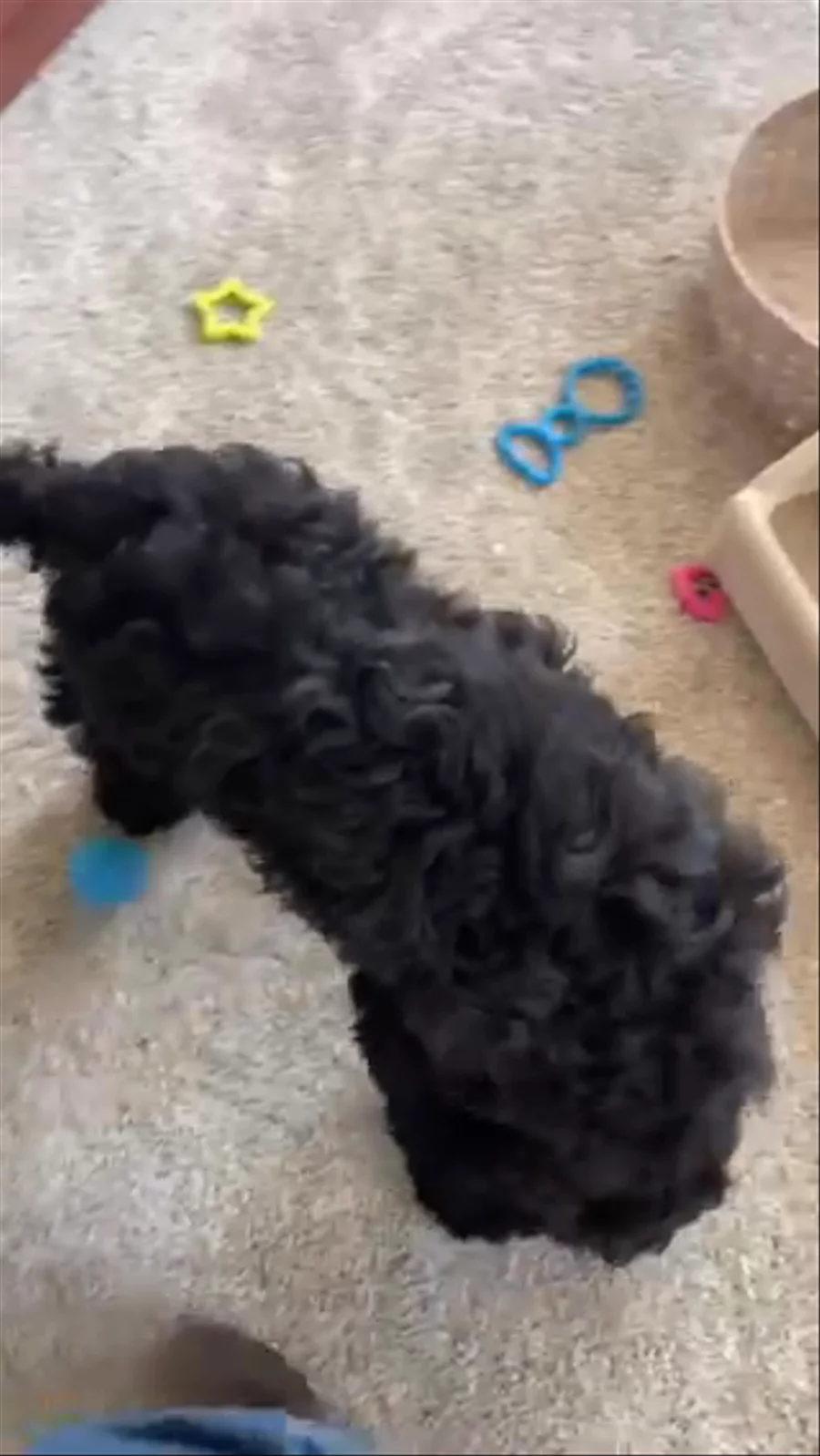 Rosie is very sweet and easygoing, she enjoys running outside and her energy level is medium. She is F1 and has a curly, nonshedding coat. Rosie was raised here with us and her parents have both been very healthy. Her puppies are always very docile and easygoing.