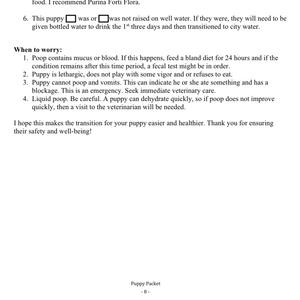Please take the time to read through everything carefully. Some of the information may differ from what I’ve shared with you directly—please follow my guidance where there are contradictions. These documents come from the training program I use every day with your puppies.