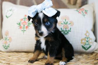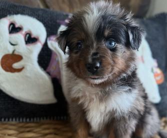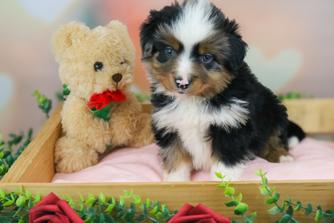 Our Toy Australian Shepherd puppies include black tri, blue merle, red merle, and red tri. Miniature American Shepherd puppies include red tri-color, black tri, red merle, and blue merle. Miniature Australian Shepherd puppies include blue merle, black tri, red tri, and red merle. Colors will vary depending on the parent dogs.