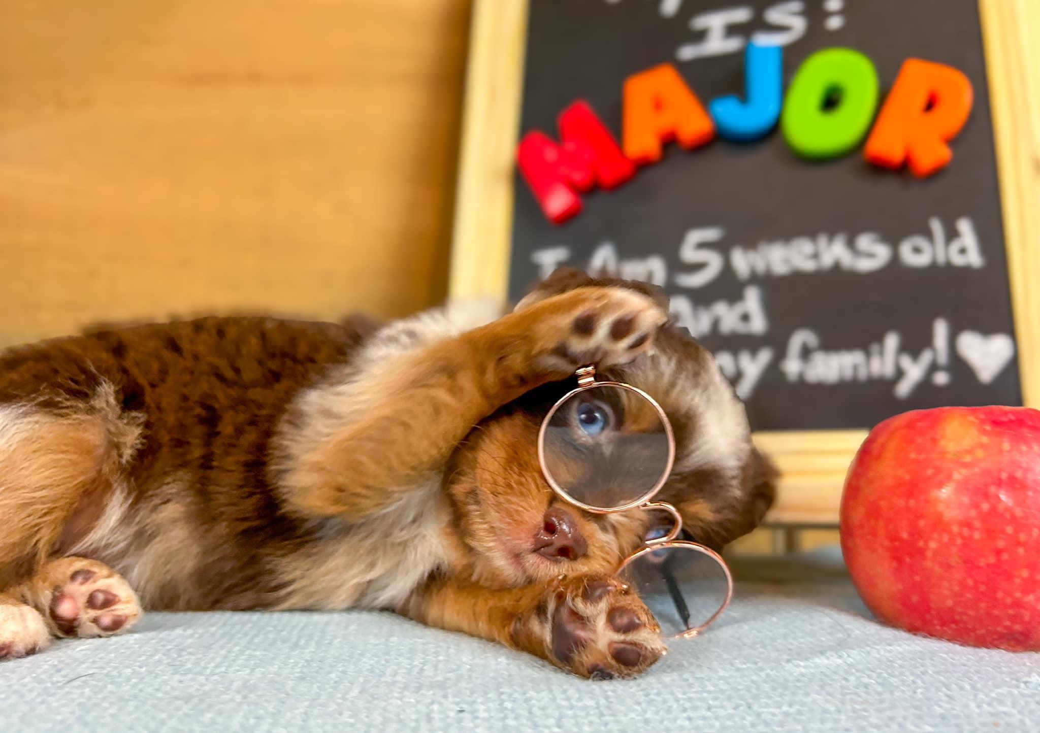 We are conscious breeders of quality Toy & Mini Aussies. We enjoy keeping their beautiful, natural tails...something that sets us apart from most. From Early Neurological Stimulation, to Noise Desensitization training, to quality foods and vitamins, we take our job very seriously to set YOUR puppy up for success! And, we truly value cultivating relationships with YOU--our babies' families.