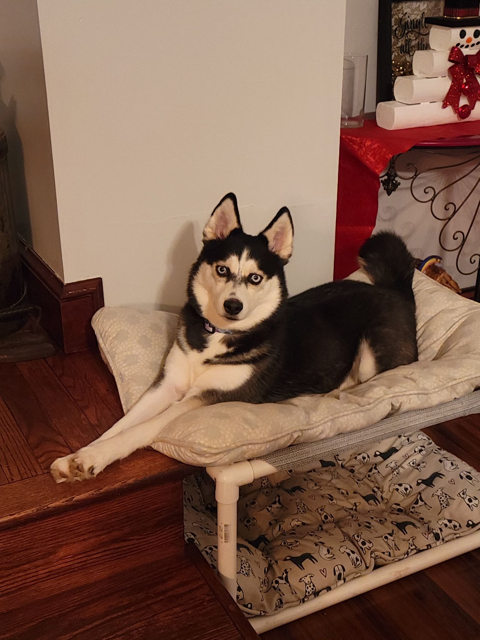 Nani has been Embark tested for DNA and Health. She passed everything with flying colors. No health issues that they can detect. She has been a wonderful addition to our home. She is family raised with kids, cats and other dogs. Her DNA came back as 75% Siberian Husky and 25% Pomeranian. She is incredibly smart and inquisitive. She is very loving and likes to please her owners.