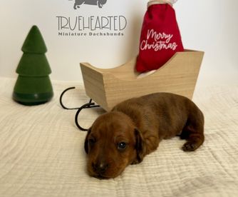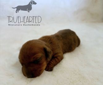 I have so many reasons to rave about Brittany and her pups. First off, Brittany was absolutely incredible to work with. She was responsive, informative and very involved - which I love! She is professional and the love she has for her dogs & pups shines so bright. She let us FaceTime with our puppy before reserving him and sent us updates & photos of him as we anticipated his arrival. Since we live in a different state, a family member picked him up and brought him to us. Brittany made the whole process seamless for us and my mother-in-law. She even sent her with extra supplies until he came home to us, which was so kind and thoughtful. When our puppy made it home to us, he was already so well versed with his crate and potty training. I was so impressed. Our puppy has the BEST demeanor and I give a lot of credit to the first 9 weeks of his life and the love Brittany showered him with. I’m still in contact with Brittany and find myself sending her updates on our boy, Marty, quite frequently. I already know that when we decide to get another dachshund, I will without a doubt go back to Truehearted!