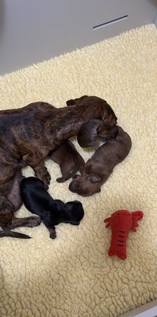 My commitment to producing healthy, well rounded puppies with the best possible start in life. All of our puppies come from genetically tested and health-certified parents. Our puppies are raised on a comprehensive development curriculum that includes Early Scent Introduction, Early Neurological Stimulation, socialization, manners, potty training and crate training.