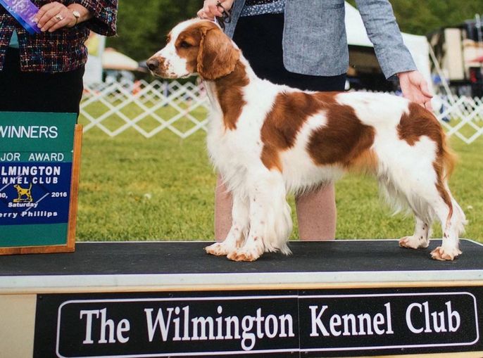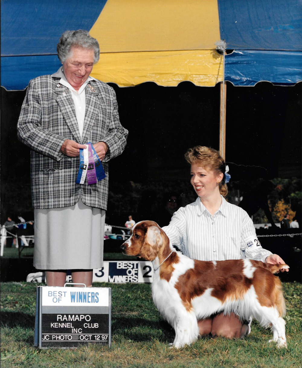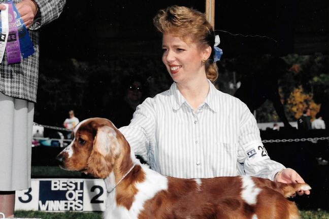 I went to a dog show in 1994 and was introduced to some amazing Welsh Springers through Marion Daniel, the breeder behind Truepenny. After several trips to watch Marion and her dogs at shows, I got my first Welshie from her. For the last twenty, years Marion and I have spent many hours talking about Welsh Springers, collaborating on possible litters, and traveling in the car together to go to locations of planned breedings and dog shows. It has been an amazing journey together!