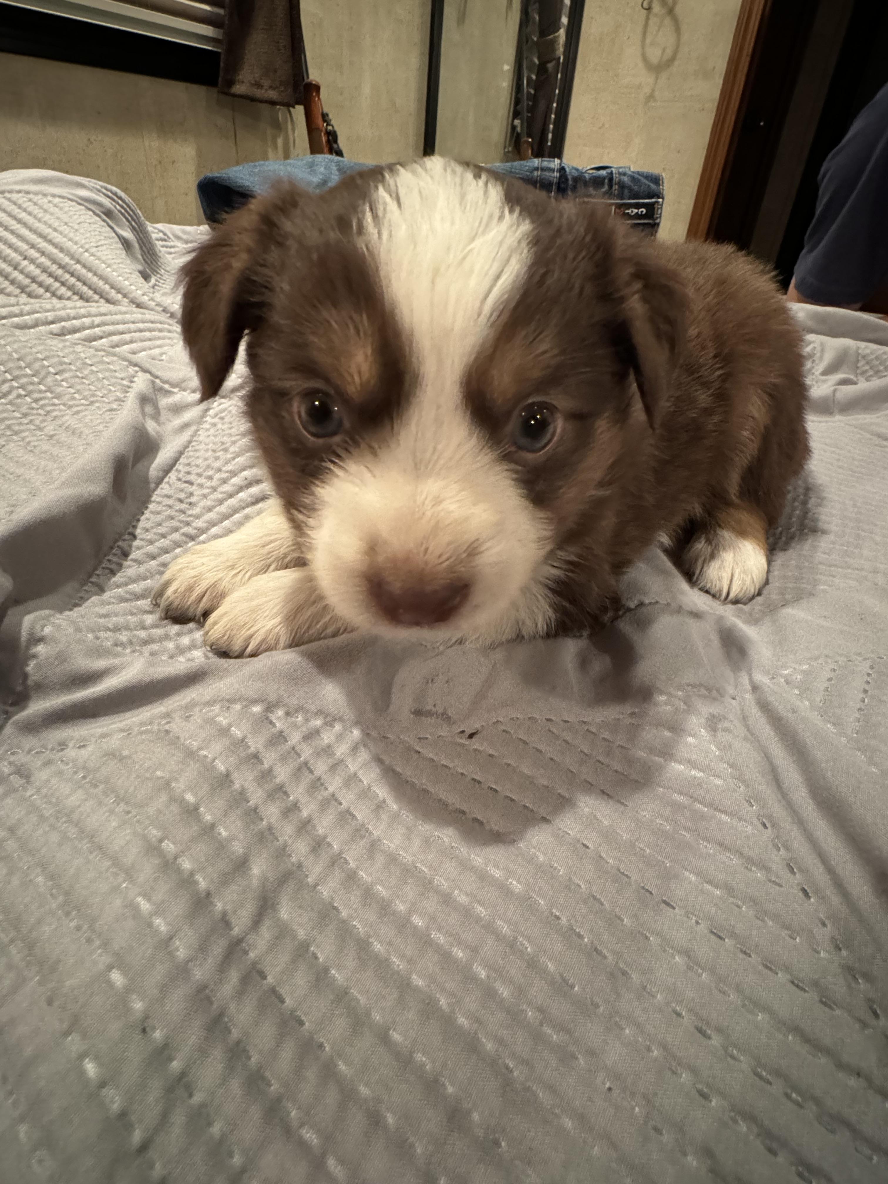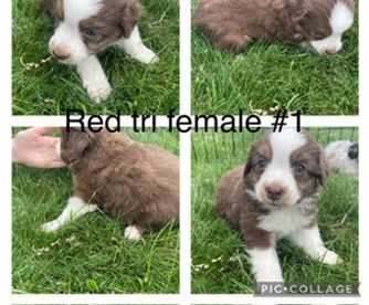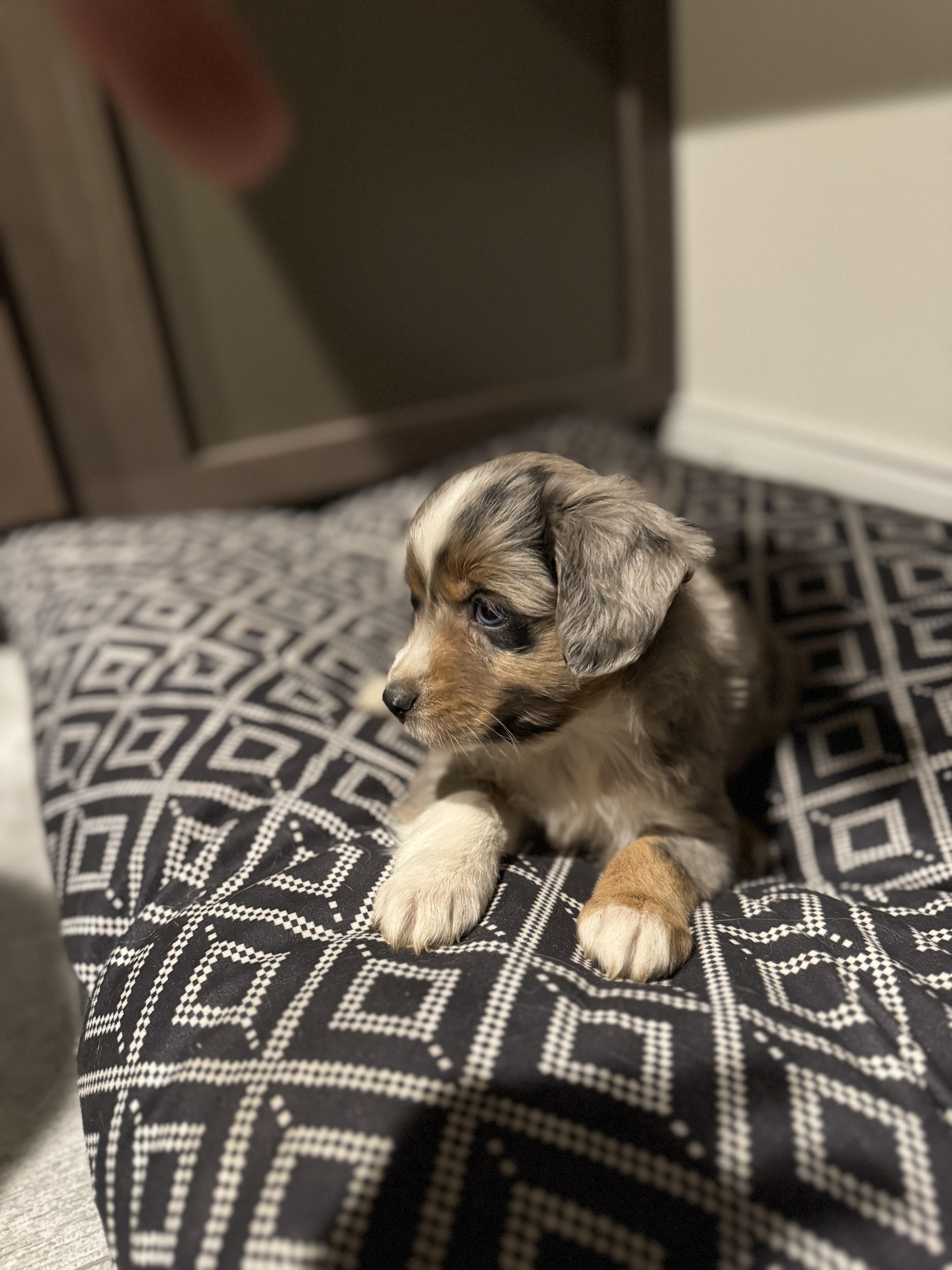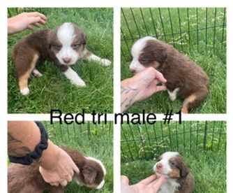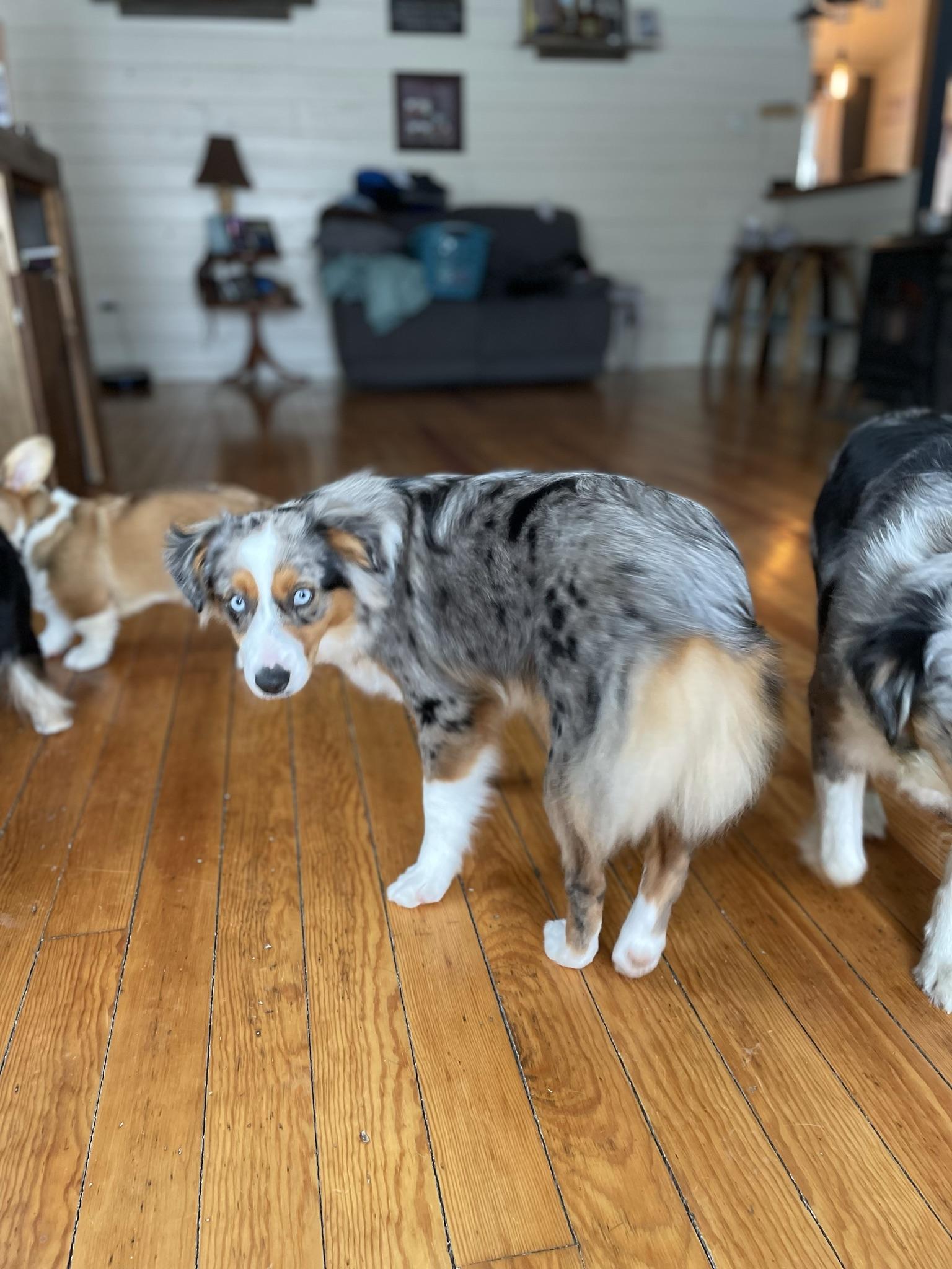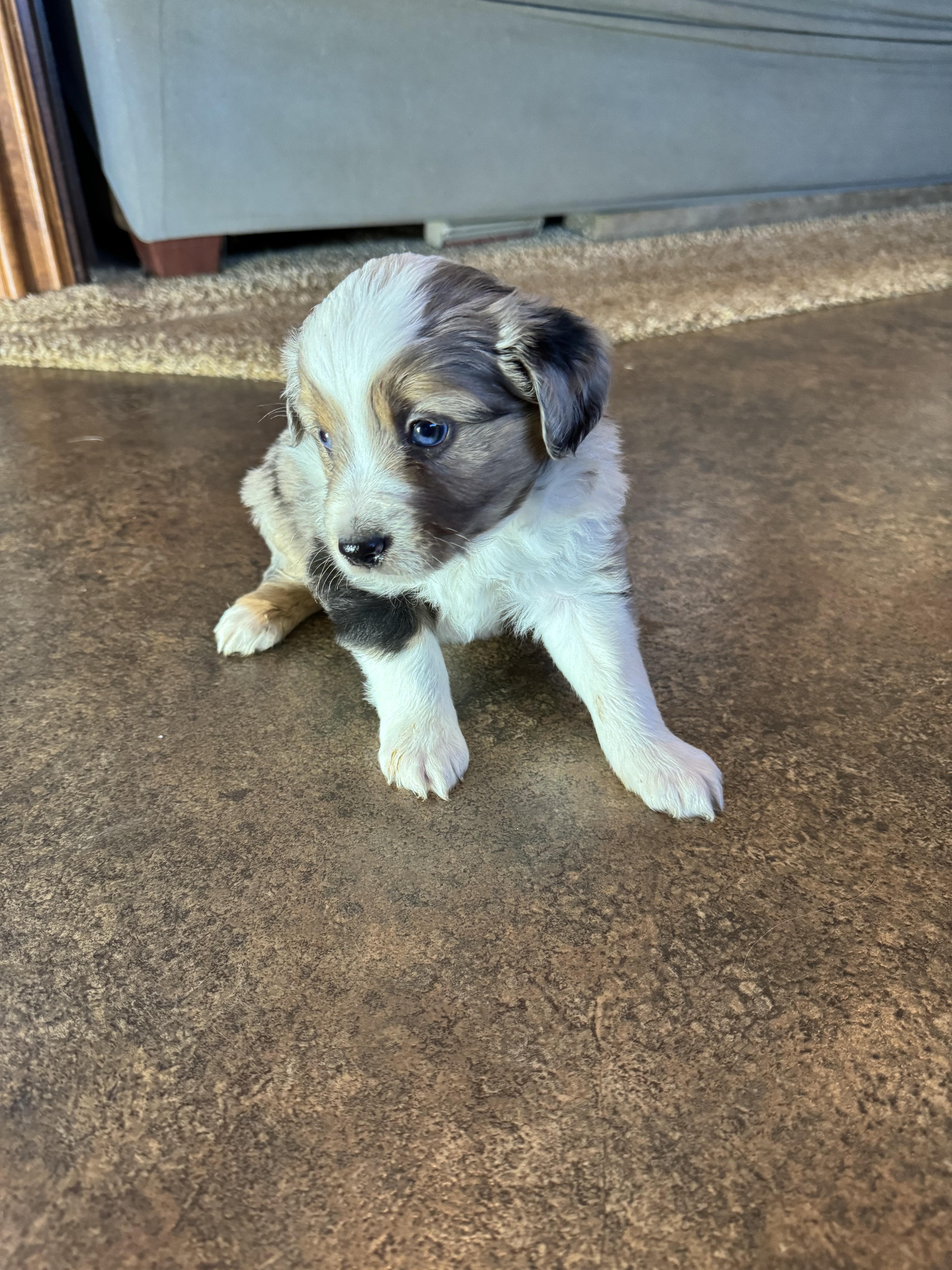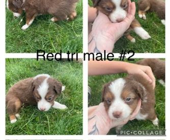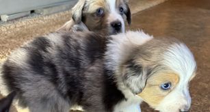 Our Miniature Australian Shepherd puppies are blue merle. Colors will vary depending on the parent dogs.
