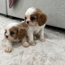 Our Golden Retriever puppies include dark golden, golden, and light golden. Cavalier King Charles Spaniel puppies include blenheim, ruby, tri-color, and black and tan. Colors will vary depending on the parent dogs.