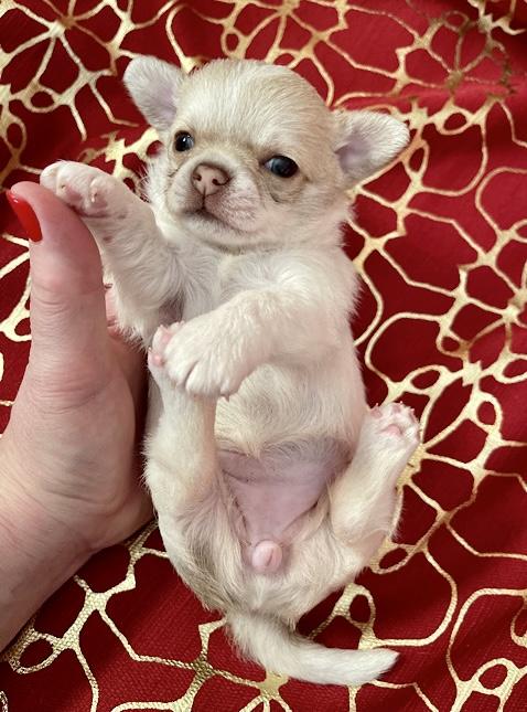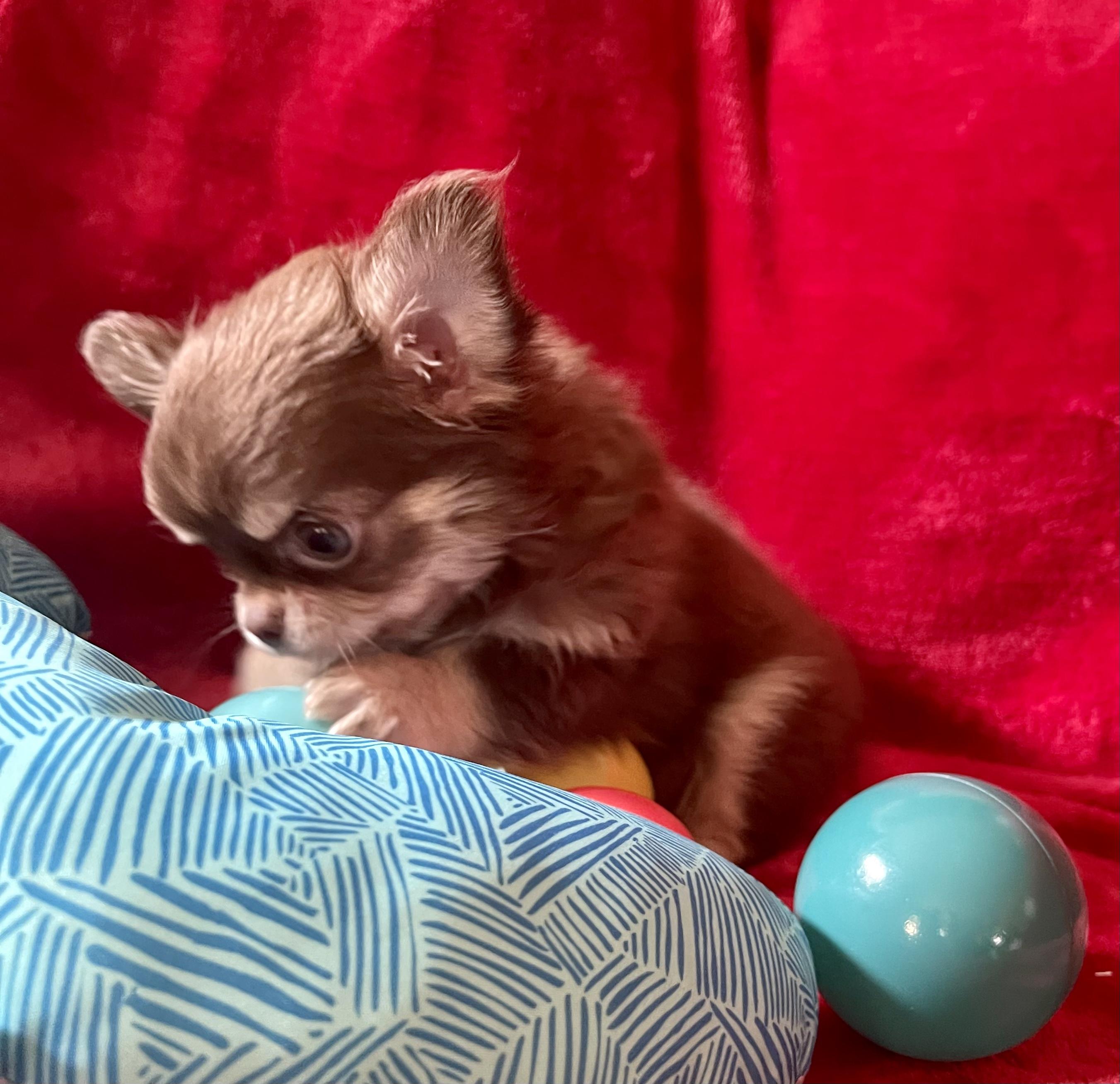 Working with Elena was a wonderful experience. She is incredibly knowledgeable and compassionate about the breed. She truly cares and loves her puppies and show dogs . I highly recommend Elena for anyone looking for a Chihuahua puppy. My puppy Brie aka Baby is very healthy, happy well socialized and loving. She is extremely smart playful and is eager to explore her new world . The exceptional quality of my puppy bred by Elena is evident in her beautiful appearance and temperament as well as her confident demeanor and personality. We drove to Allentown P.A. on 7/27/25 to pick her up and saw how well cared for and socialized Brie aka Baby was. We fell in love with her even more. We saw her home environment and her interactions with her brother and siblings.We are so grateful to have found such a dedicated and ethical breeder in Elena . She made the whole process and experience with Good Dog very easy and stress free. She kept us updated with pictures and video of our puppy. We are so pleased to have found Elena and our new family addition. We look forward to sharing our milestones as she grows in updates with Elena.