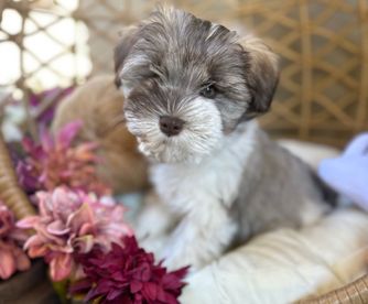 First off, we are not a puppy mill! We have one schnauzer who is able to breed, and that is Pippa. Pippa is a 7-pound, mega coated, liver phantom parti colored schnauzer. She has an incredible temperament and a loving disposition. She loves everyone, and I’ve even considered getting her certified to visit children’s hospitals and nursing homes. She brings so much joy to us and everyone who meets her. Not that we have a favorite, but Pippa is our favorite dog of all time. Her traits inspired us to breed her and share a piece of our hearts with others. Our goal is to provide families with healthy, loving pets they will cherish and remember for a lifetime.