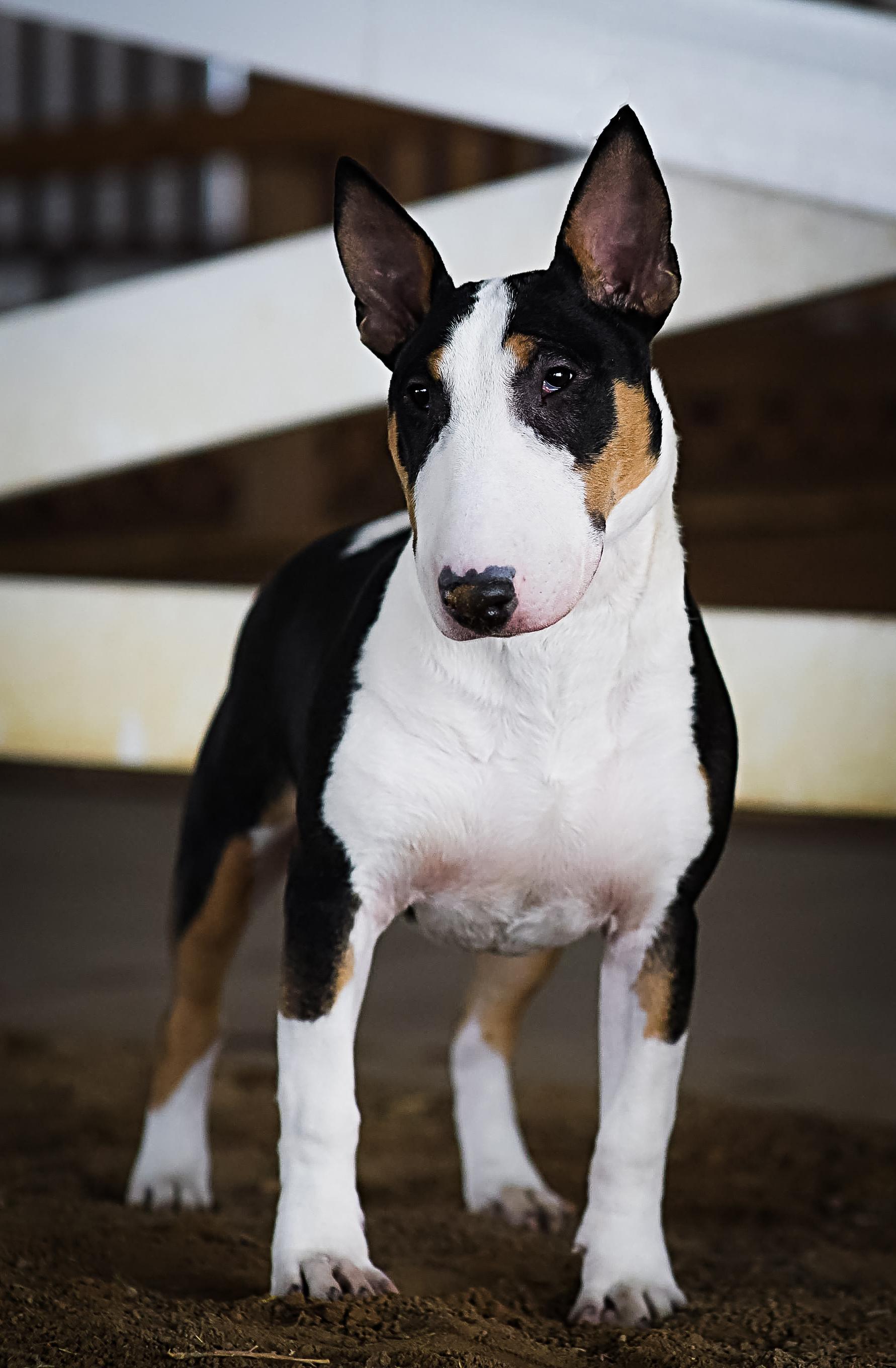 Tootie is a beautiful black and tan with white. She has expressive symmetrical face markings. High energy and will play with kids all day. Tootie is a Grand Champion Bronze Champion in the Bull Terrier world. She very much enjoys the attention of the show world. One of her favorite things is the FastCat competition which is a 100 yard dash with the dog she seen a lure.