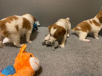 Our puppies are orange and white. Colors will vary depending on the parent dogs.