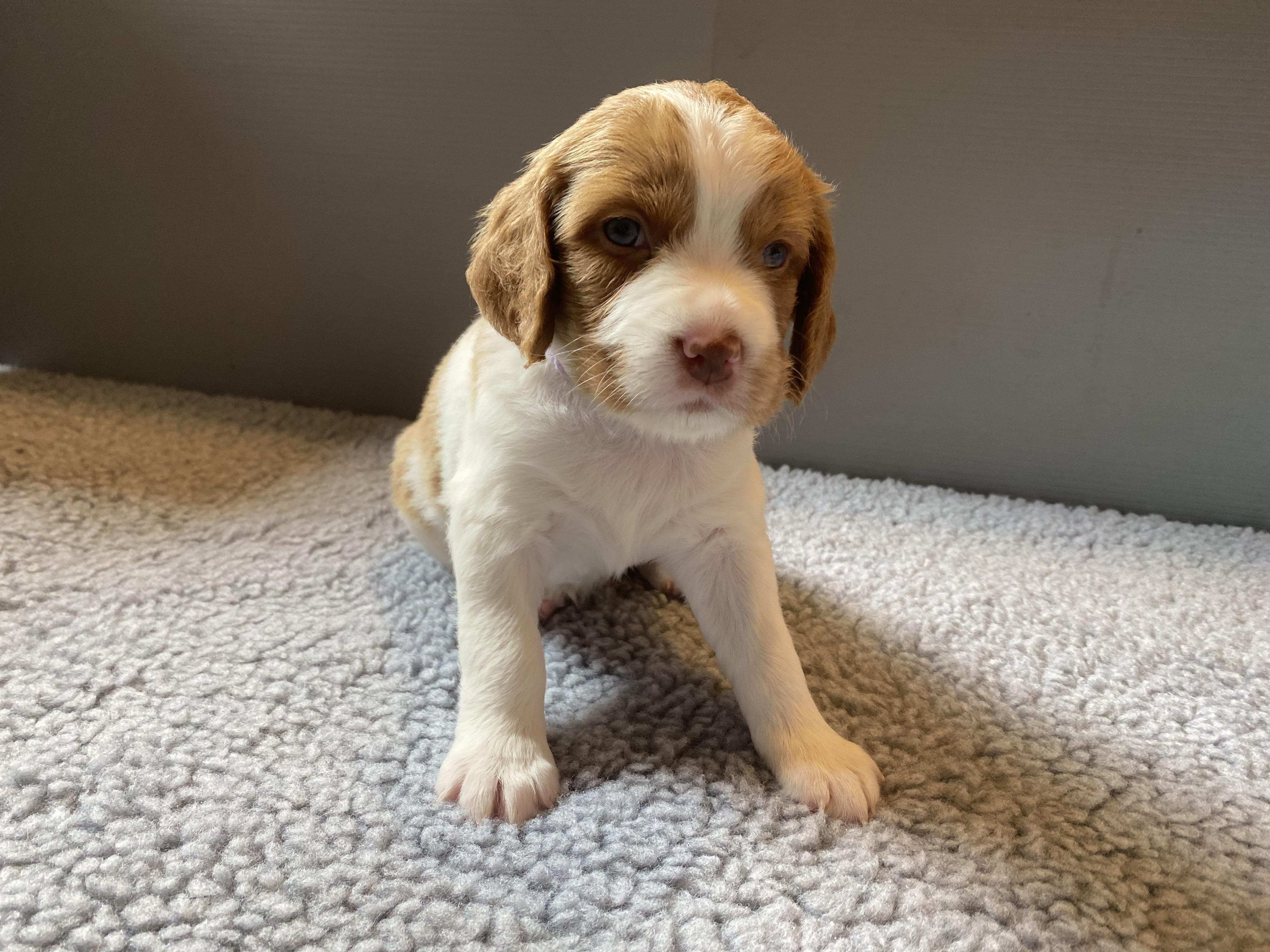 Winnie is a female Brittany. Carefully selected as a great representative of her breed, Nancy decided to make her part of their program. Nancy has passed Good Dog’s screening process, which involved a review of their breeding practices, environment, and the mental and physical health of their dogs.
