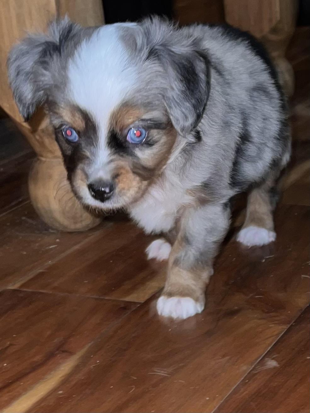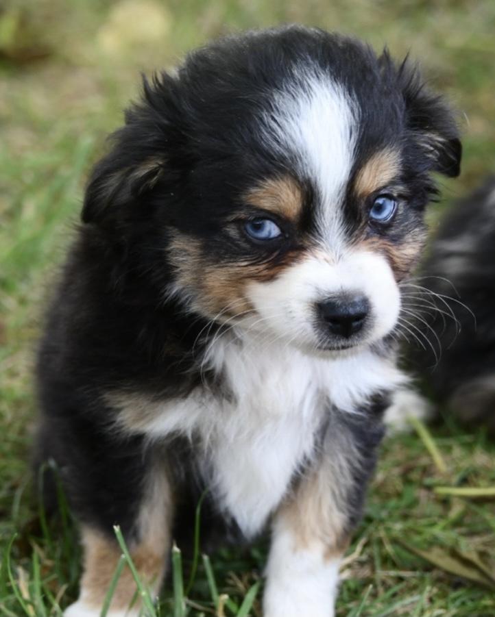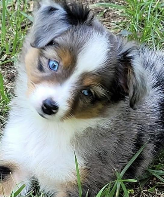 Our Aussiedoodle puppies include blue merle, red merle, black and white, and red tri-color. Australian Shepherd puppies include black, red merle, blue merle, and red. Toy Australian Shepherd puppies include red, black, blue merle, and red merle. Colors will vary depending on the parent dogs.