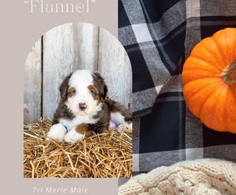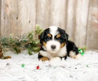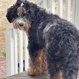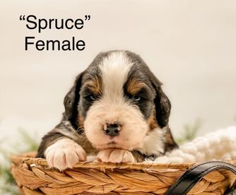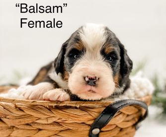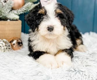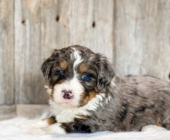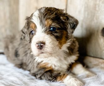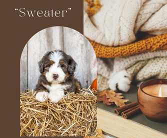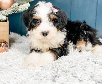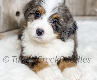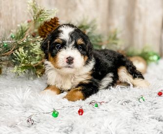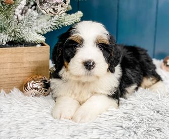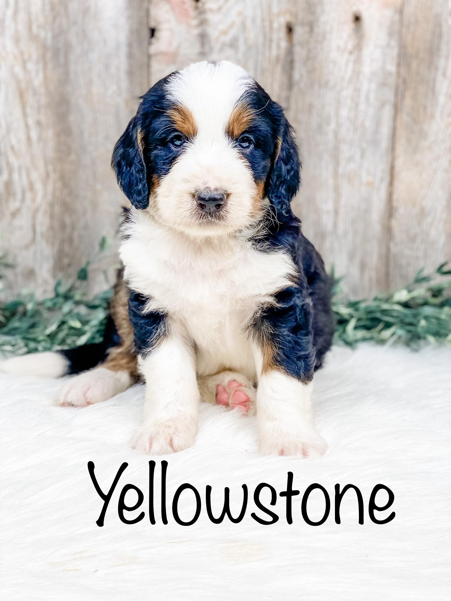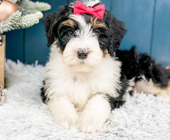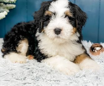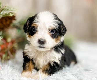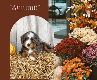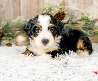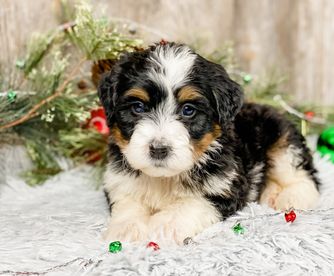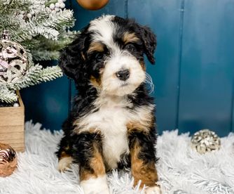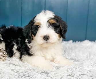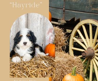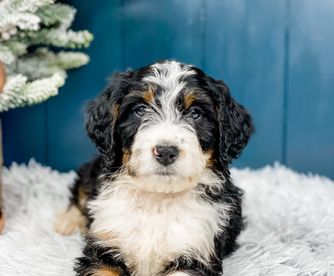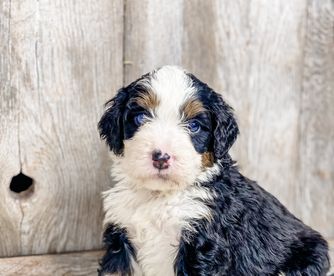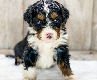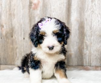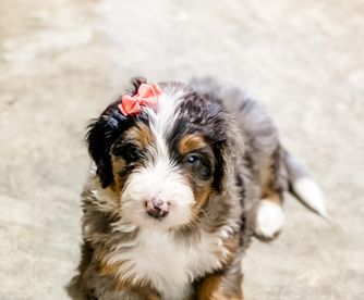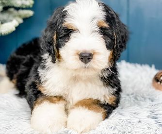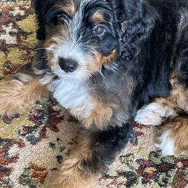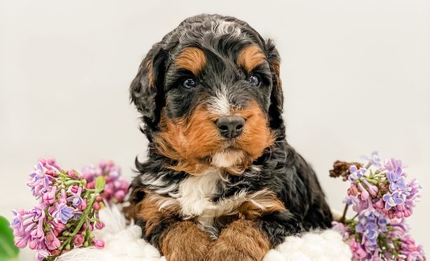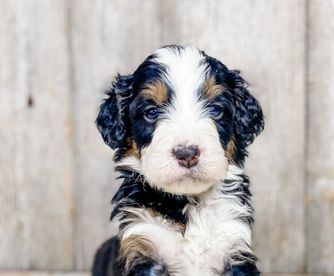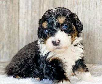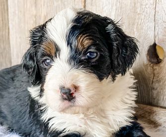 Our Goldendoodle puppies include cream, apricot, red, and parti. Bernese Mountain Dog puppies are black rust and white. Bernedoodle puppies include sable, black and white, and tri-color. Colors will vary depending on the parent dogs.