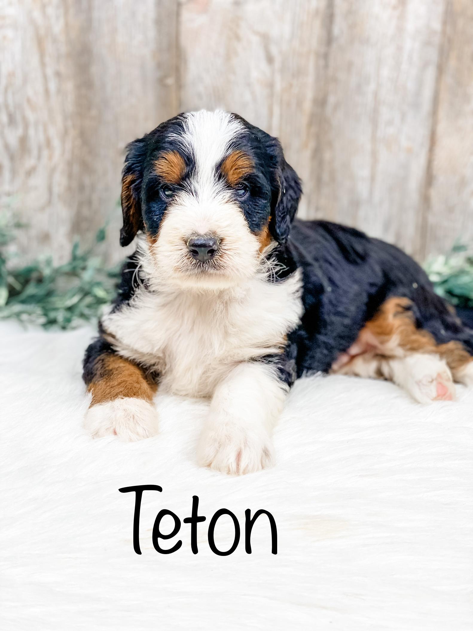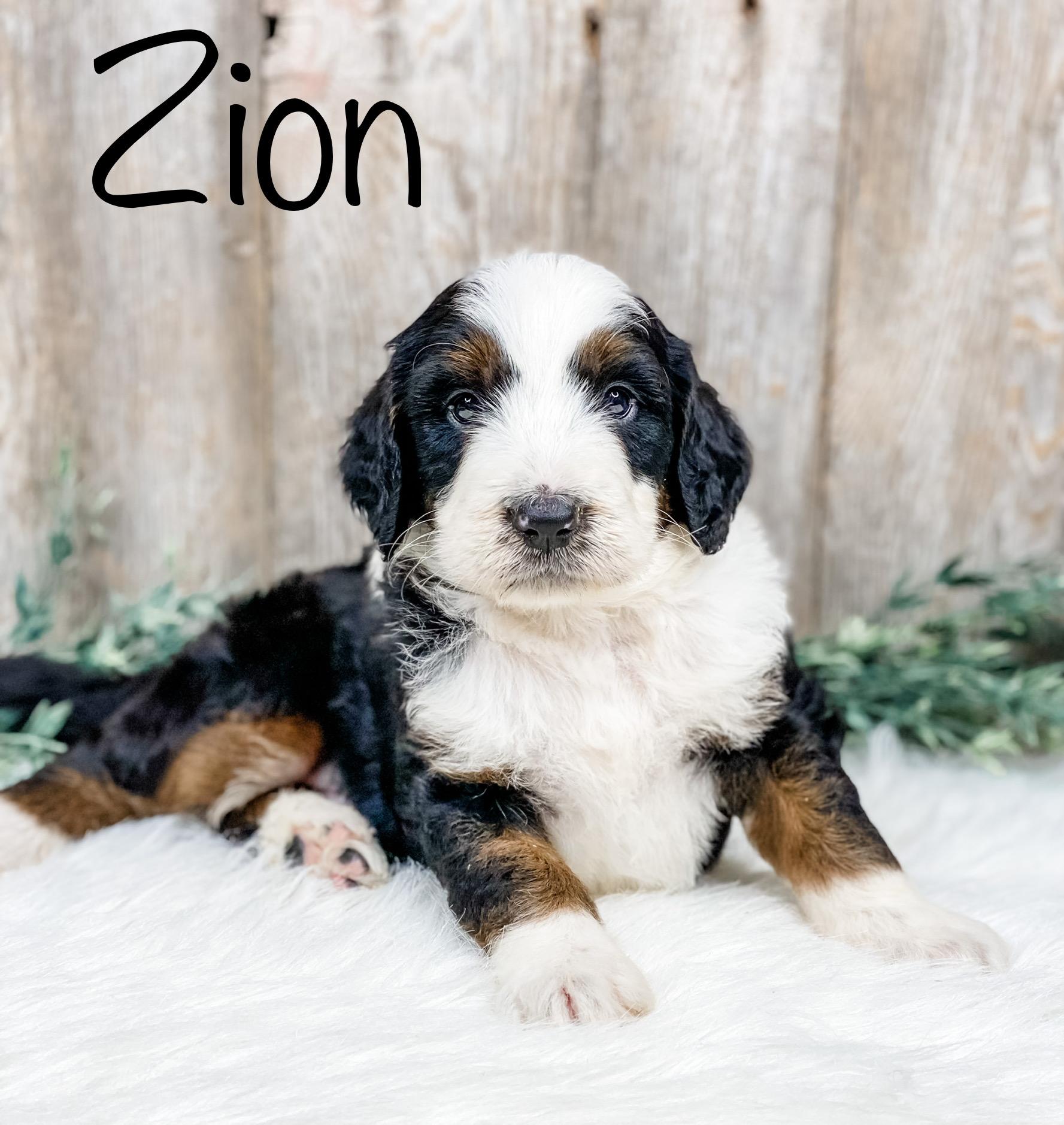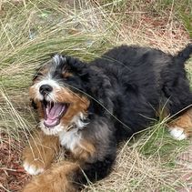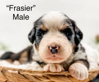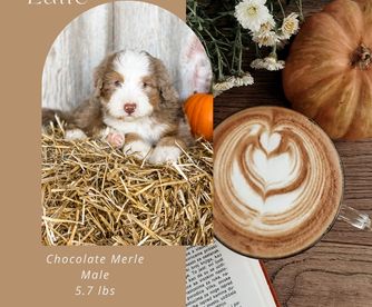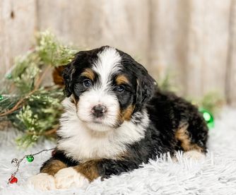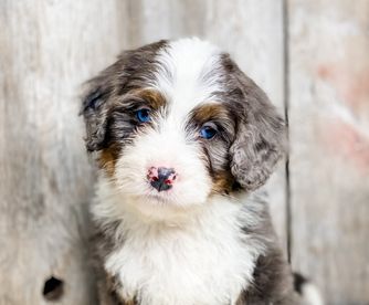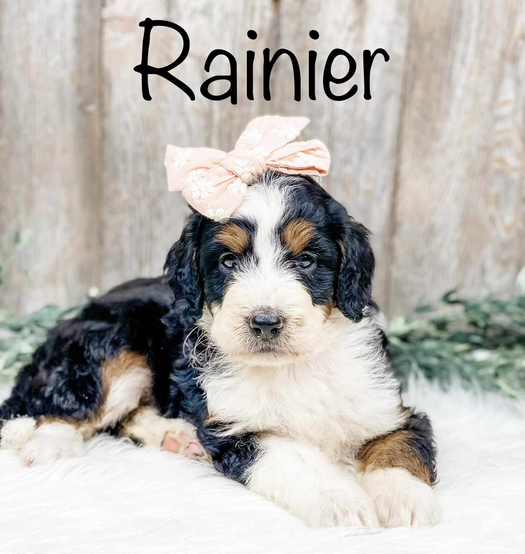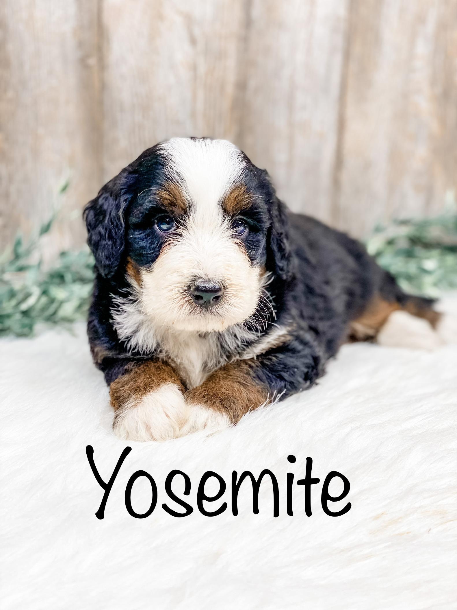 Our Goldendoodle puppies include cream, apricot, red, and parti. Bernese Mountain Dog puppies are black rust and white. Bernedoodle puppies include sable, black and white, and tri-color. Colors will vary depending on the parent dogs.