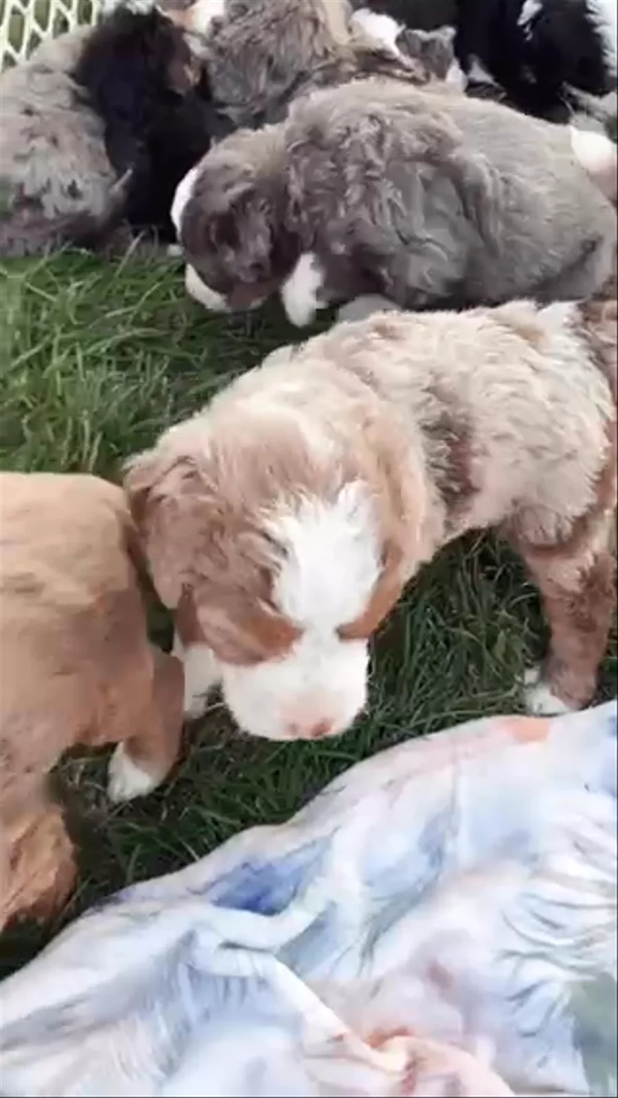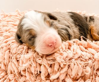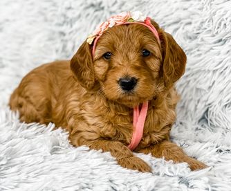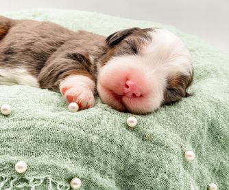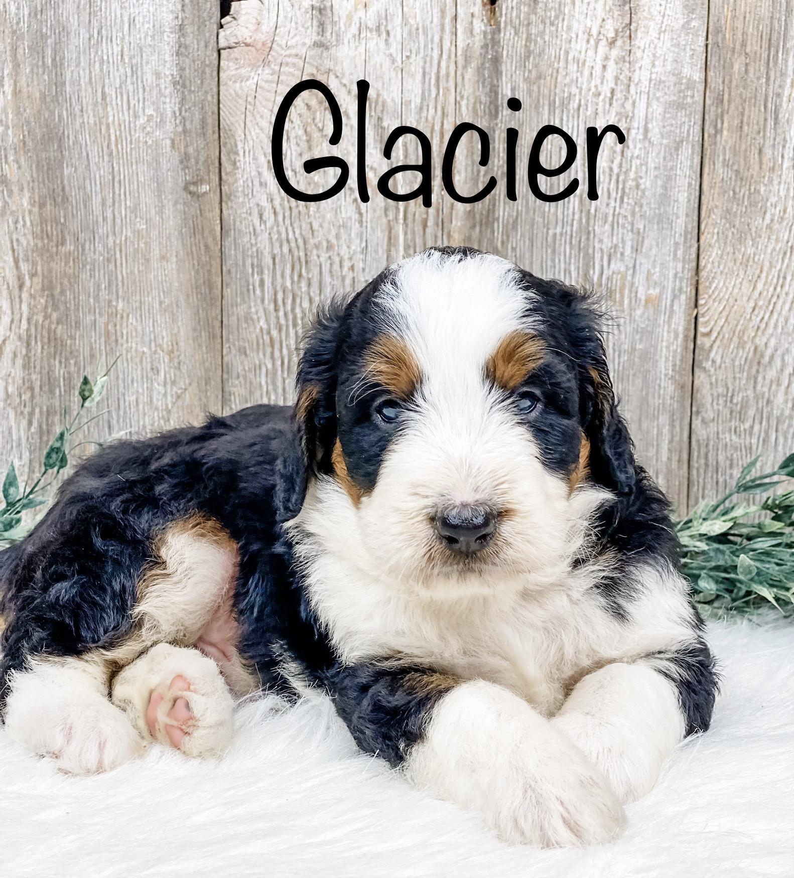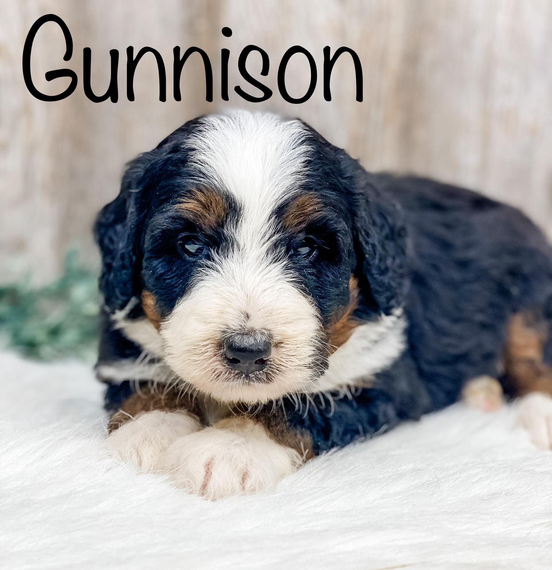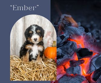 Our Goldendoodle puppies include cream, apricot, red, and parti. Bernese Mountain Dog puppies are black rust and white. Bernedoodle puppies include sable, black and white, and tri-color. Colors will vary depending on the parent dogs.