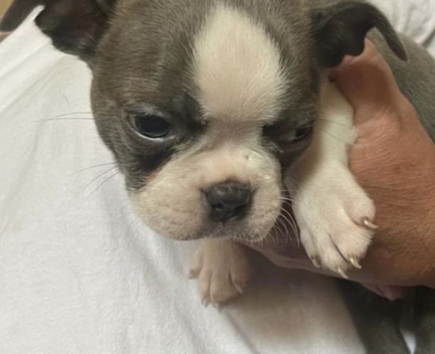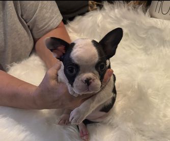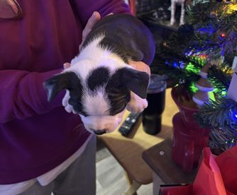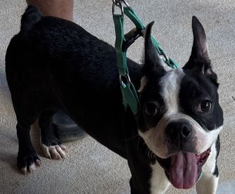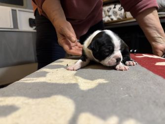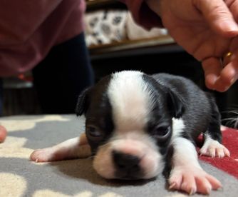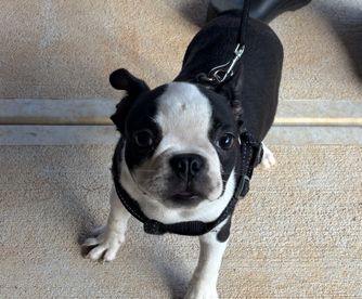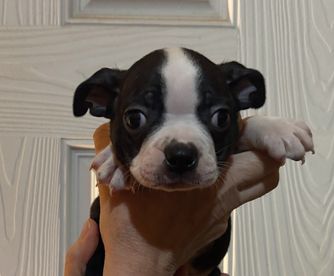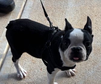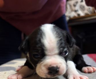 Black and white with a Haggerty. Beautiful Boston with great markings . Very seeet easy going.