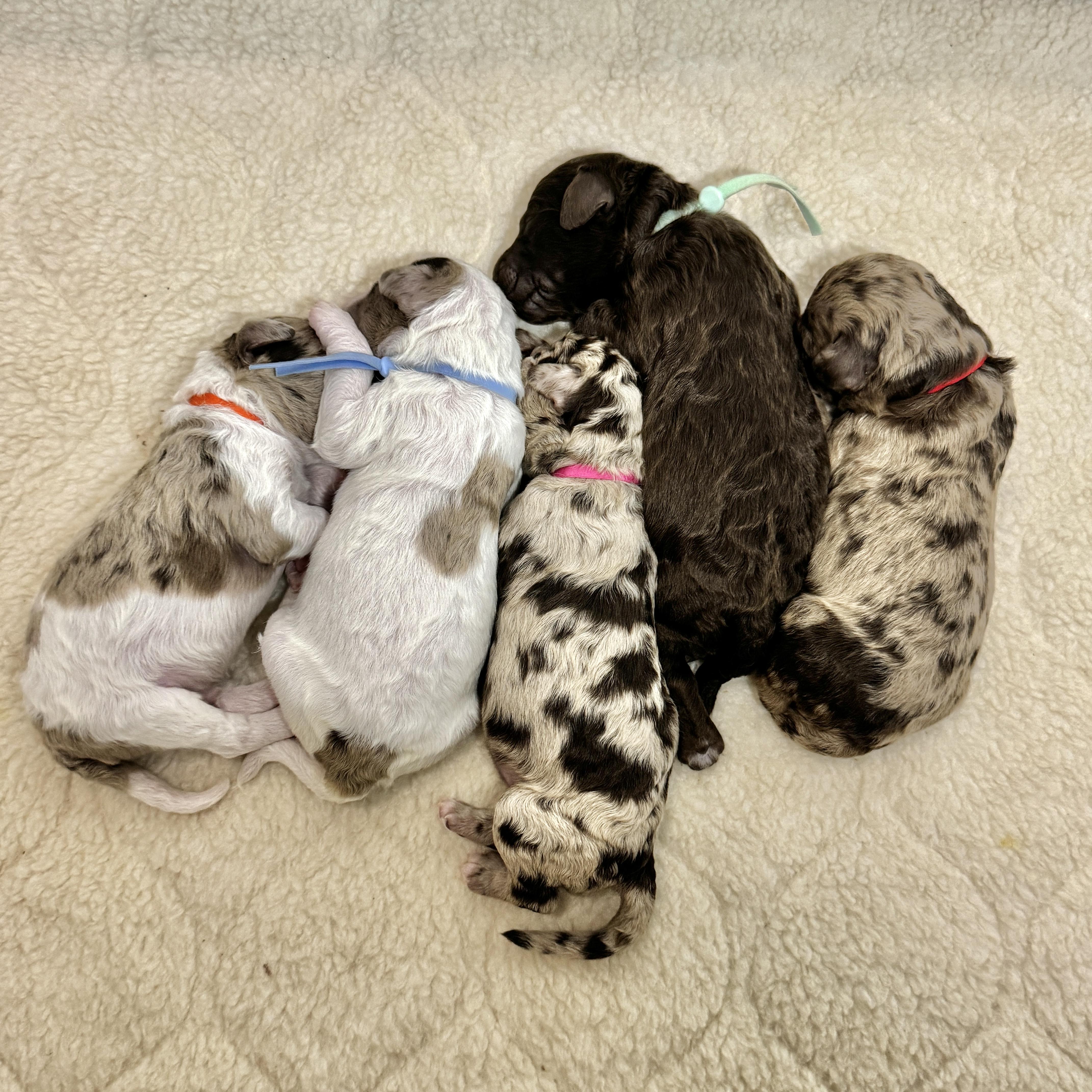 Our puppies include cream, apricot, red, chocolate, and merle. Colors will vary depending on the parent dogs.