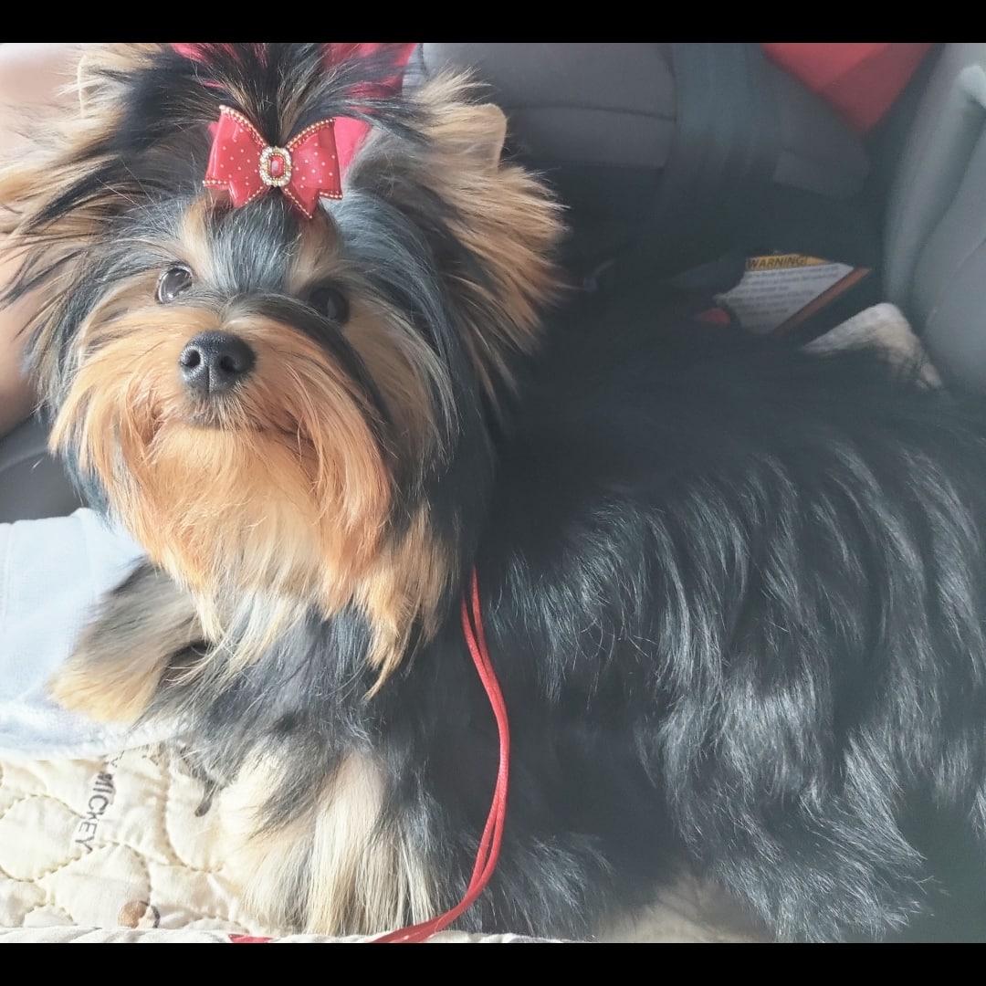 Gorgeous dark traditional Yorkshire Terrier gal she is sassy bossy and a total lap dog she loves to chase lizards outdoors and play and run in the grass. She is built square and strong, she has beautiful black combination hair / a softer coat, tan markings and big expressive eyes that make her a beaty