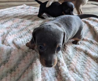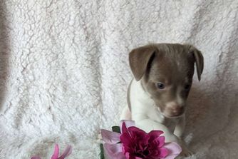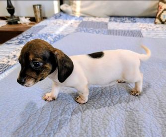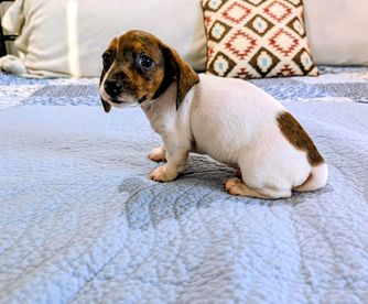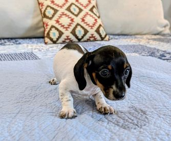 Our Rat Terrier puppies include fawn white and tan, white and blue fawn, white and blue, white and black, black white and tan, white, chocolate and tan, white and silver, and blue white and tan. Dachshund puppies include piebald, chocolate, chocolate and tan, fawn (isabella) and tan, blue and tan, black and tan, and dapple. Colors will vary depending on the parent dogs.