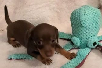 Paul is a male Dachshund. Carefully selected as a great representative of his breed, Cheryl decided to make him part of their program. Cheryl has passed Good Dog’s screening process, which involved a review of their breeding practices, environment, and the mental and physical health of their dogs.