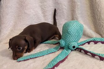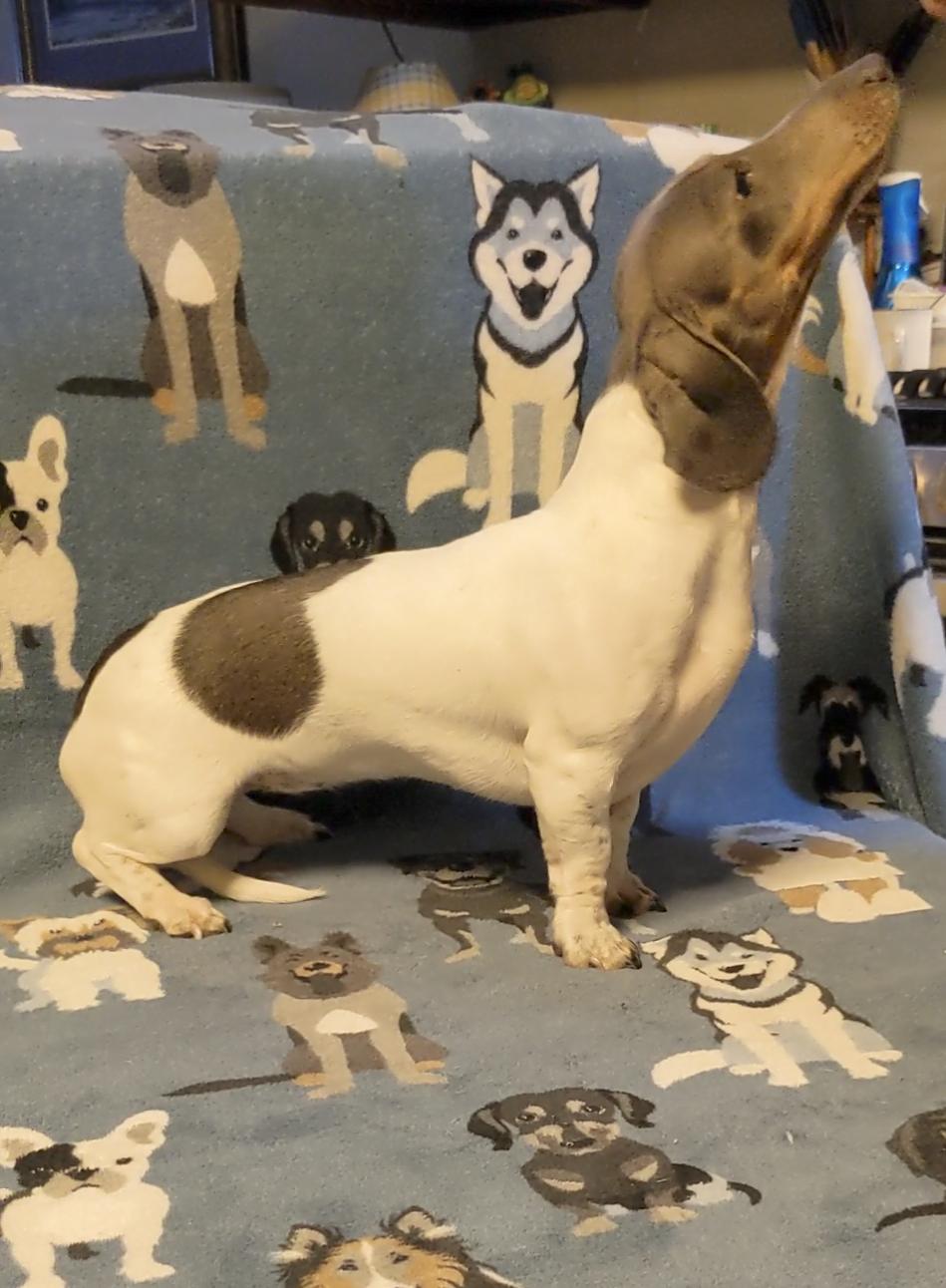 Hannibal is a male Dachshund. Carefully selected as a great representative of his breed, Cheryl decided to make him part of their program. Cheryl has passed Good Dog’s screening process, which involved a review of their breeding practices, environment, and the mental and physical health of their dogs.