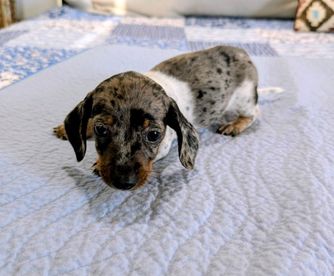 Dachshund puppies are miniature size. Sizes will vary depending on the parent dogs.