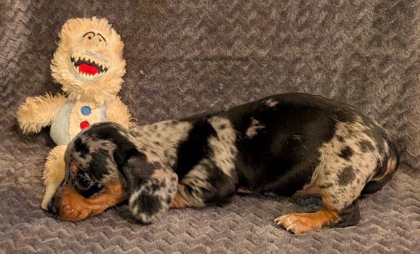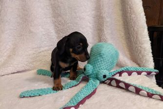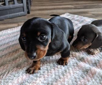Dachshund puppies include longhaired and smooth coat varieties. Coat types may vary depending on the parent dogs.