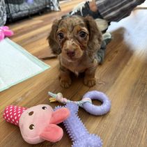 Piper is a female Dachshund. Carefully selected as a great representative of her breed, Cheryl decided to make her part of their program. Cheryl has passed Good Dog’s screening process, which involved a review of their breeding practices, environment, and the mental and physical health of their dogs.