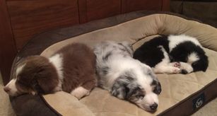 Our puppies include black, red merle, blue merle, and red. Colors will vary depending on the parent dogs.