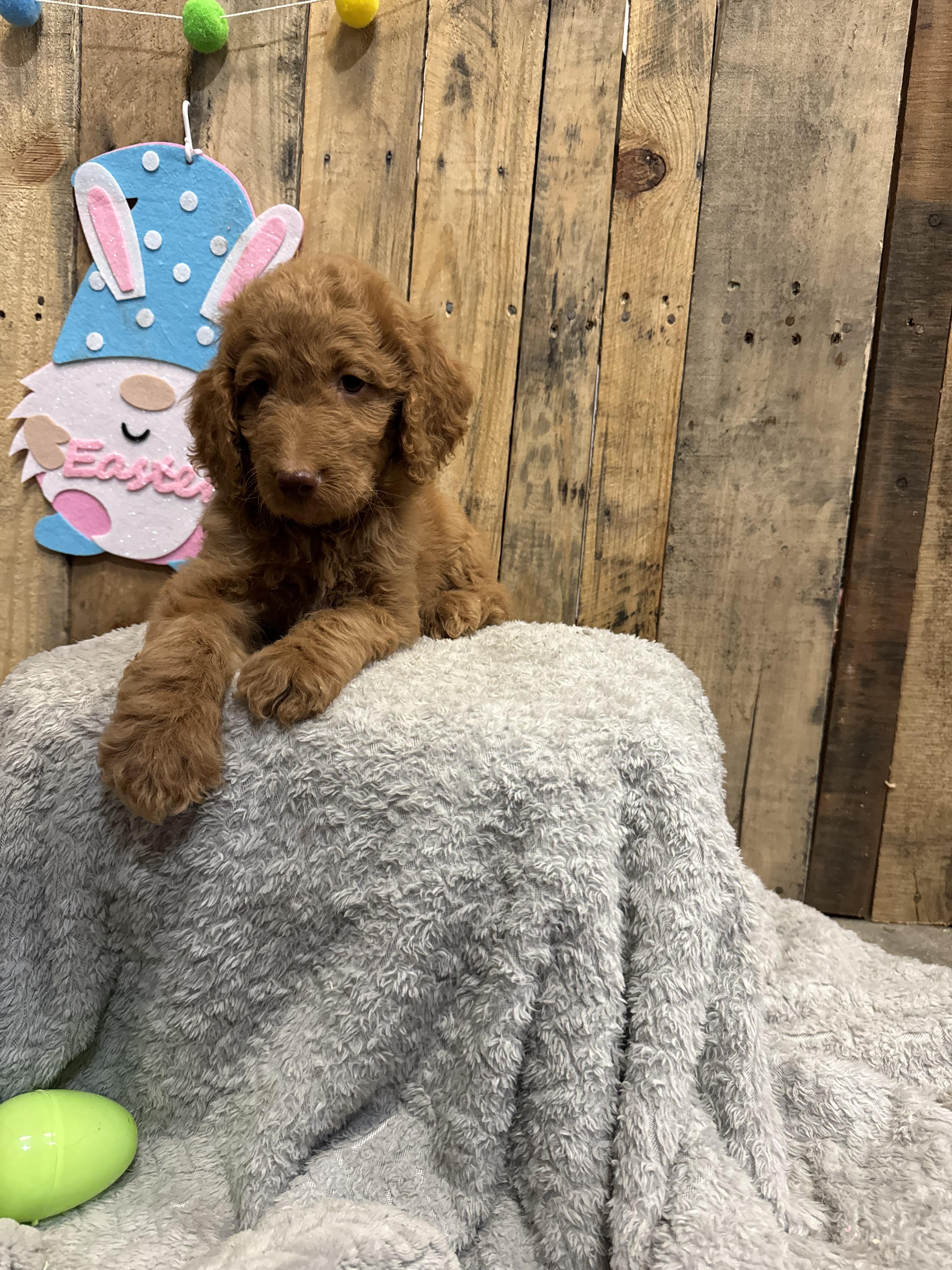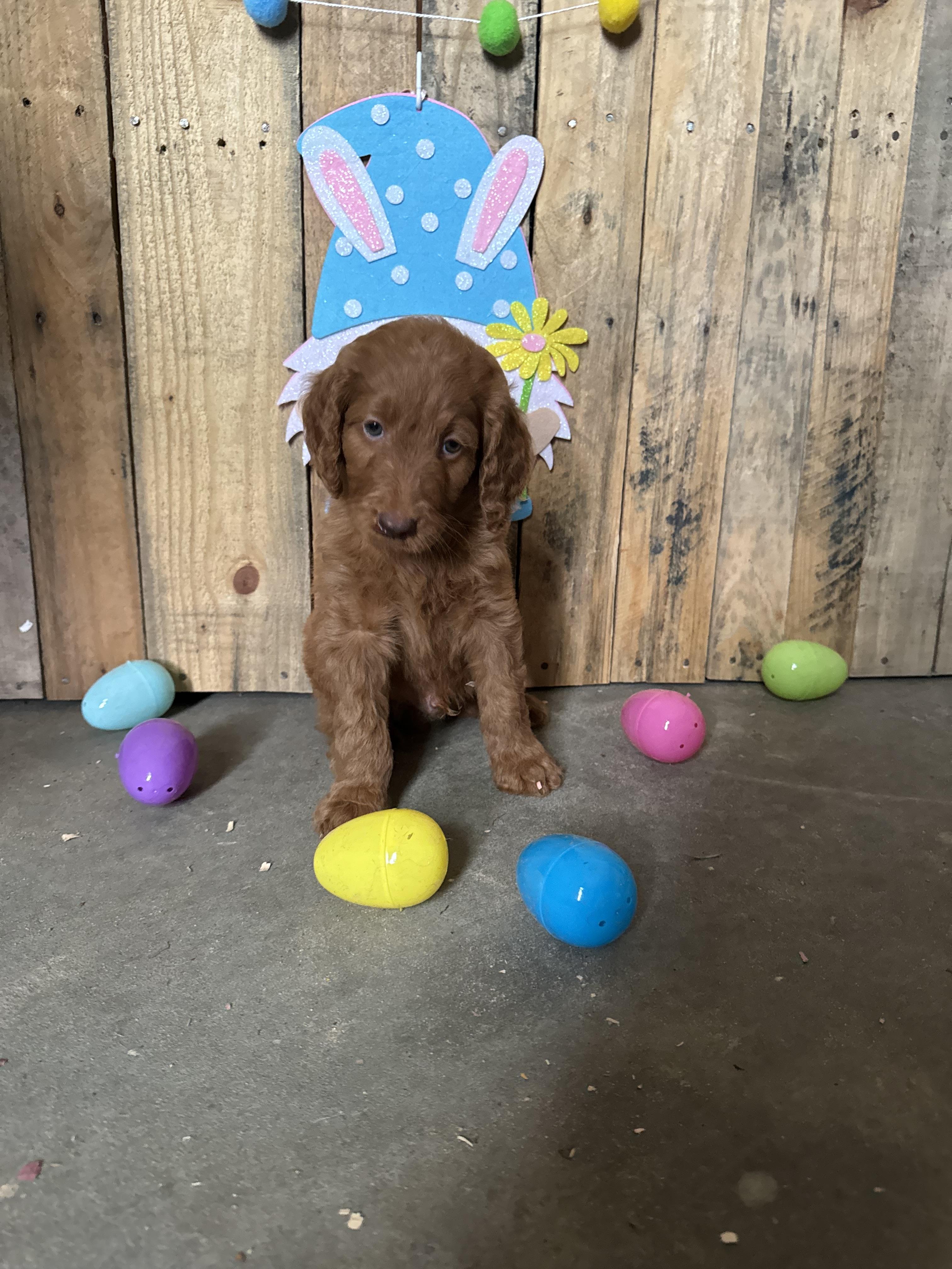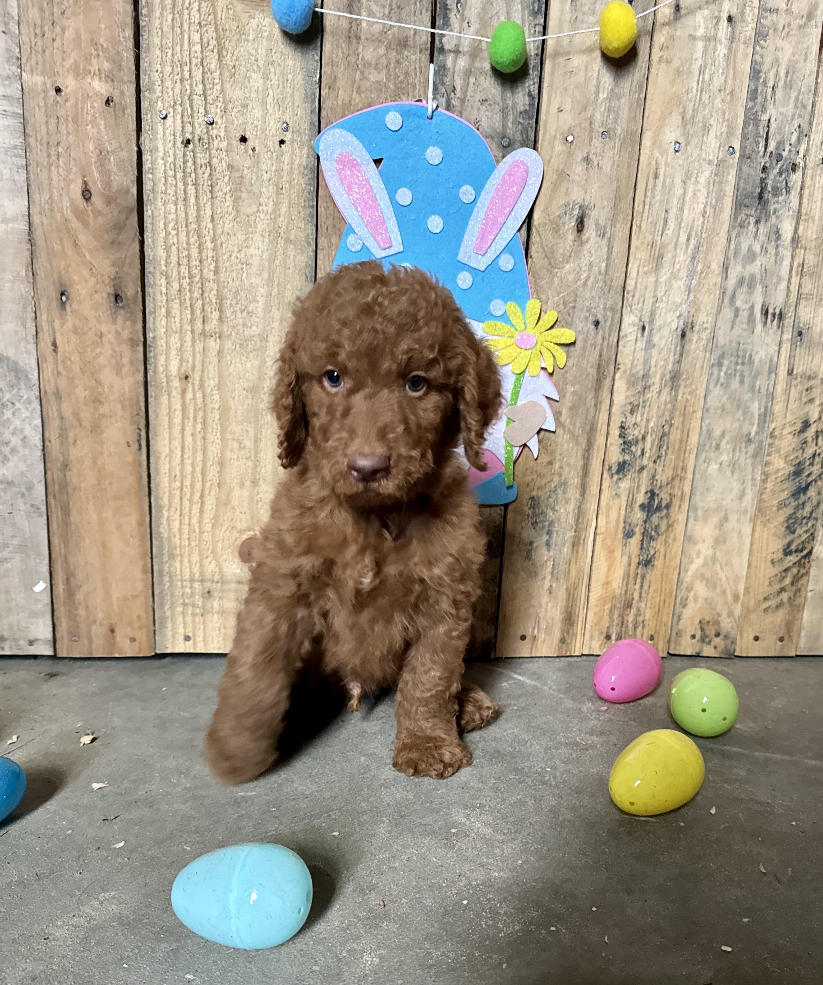 Our Goldendoodle puppies include apricot, red, and chocolate. Poodle puppies include apricot, black, brown, and cream. Colors will vary depending on the parent dogs.