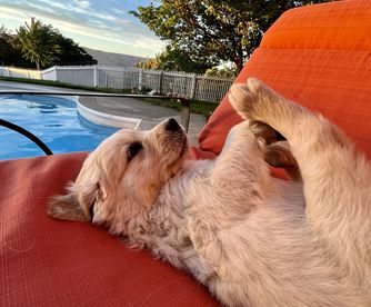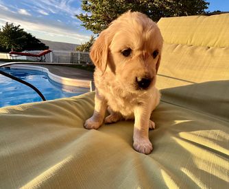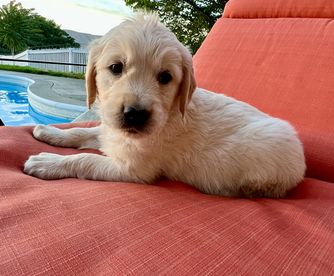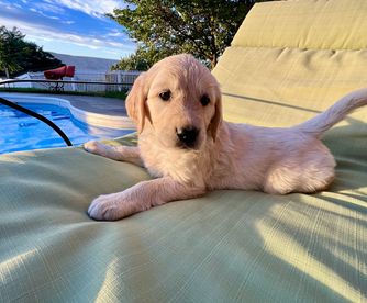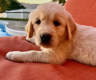 We give endless attention and love to all of our pups. We provide basic training for each pup, including swimming lessons. We make sure to give them plenty of opportunities to run, play, and socialize with humans of all ages. We take the home placement of our Golden puppies very seriously and screen each client to make sure it's a good home and family environment for our pup.