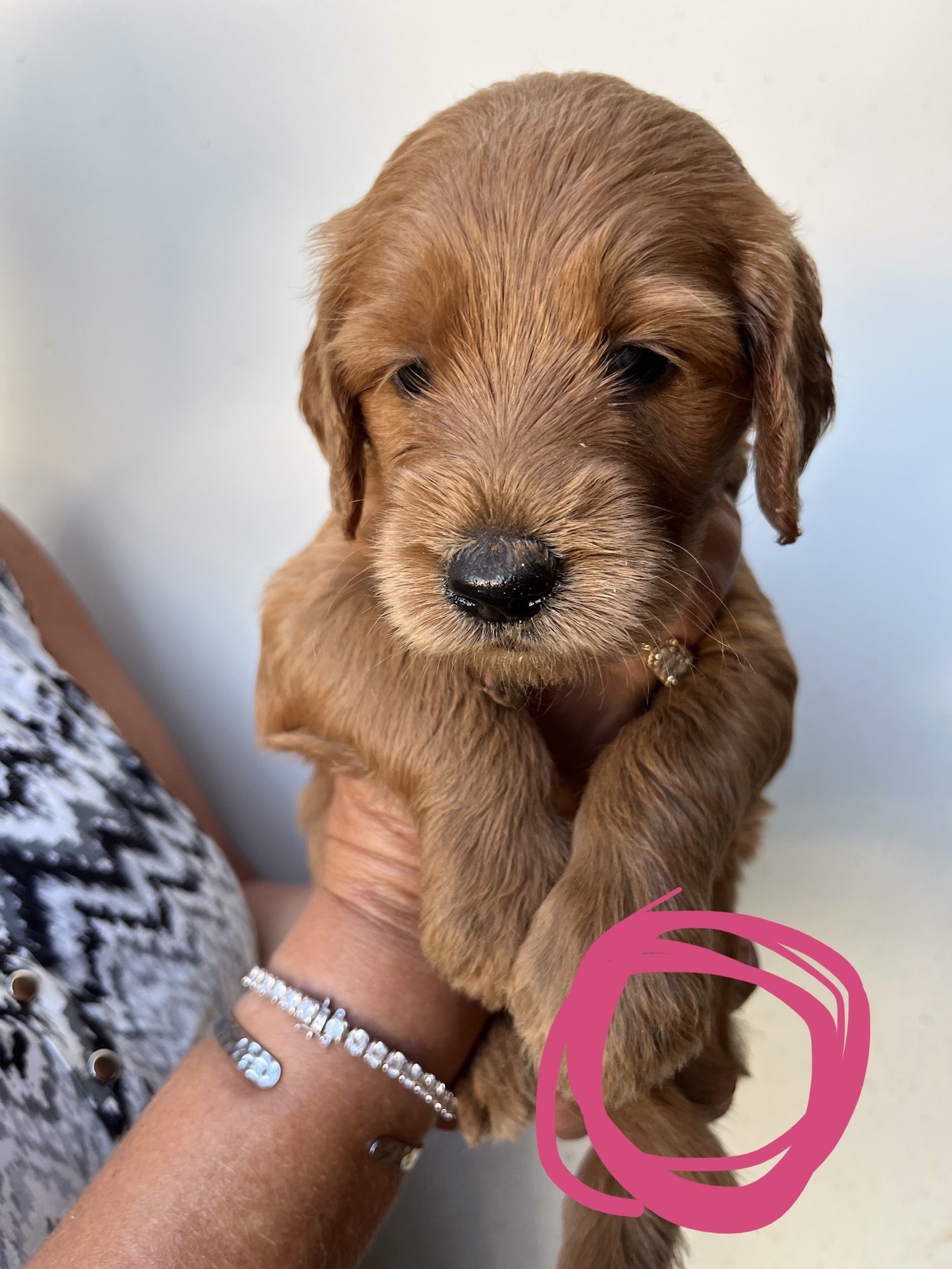 Our puppies include apricot and red. Colors will vary depending on the parent dogs.