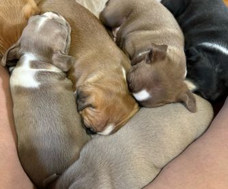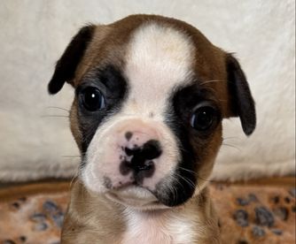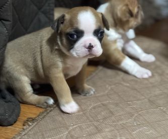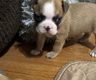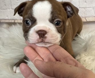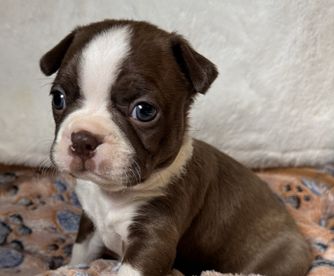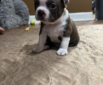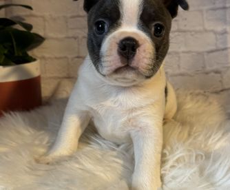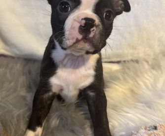 I'm Melanie B., the breeder behind Twist of Faith Farms located in Wellington, OH. Boston Terriers are our passion, and we can't imagine spending our lives without them. All of our Bostons are AKC parents JHC and DM cleared. They will be wormed 3x, 6 week vaccine, microchipped and vet checked. They are litter box trained at 4 weeks old to assist with potty training. They are socialized with kids, large dogs, and a cat.