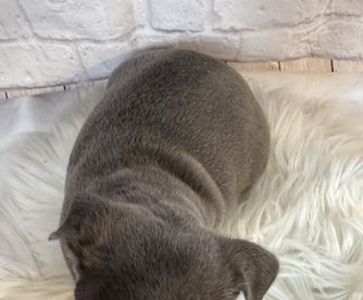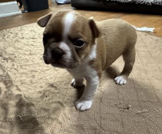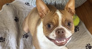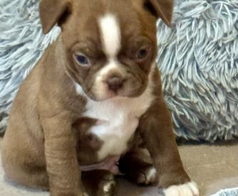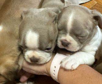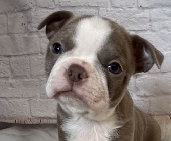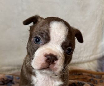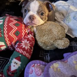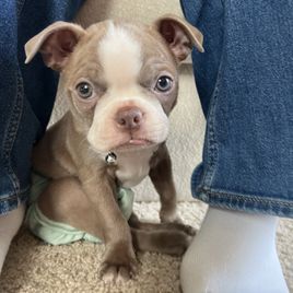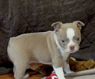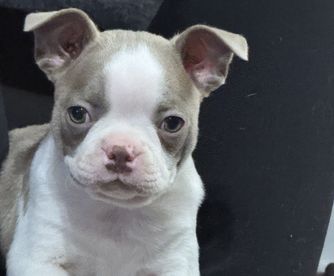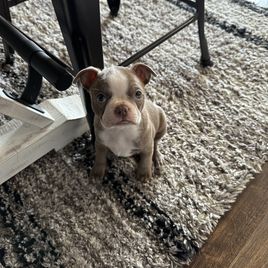 Pappy is a Lilac and White Boston Terrier, he is about 17 pounds. He is very energetic, loves to run and play.