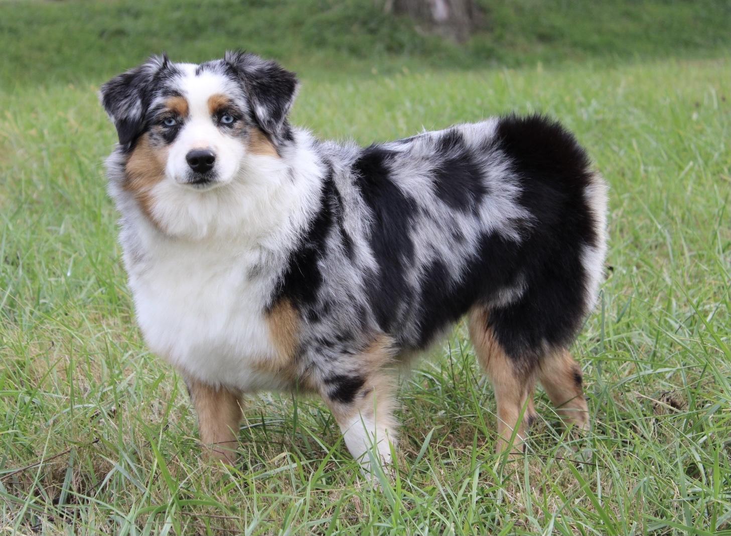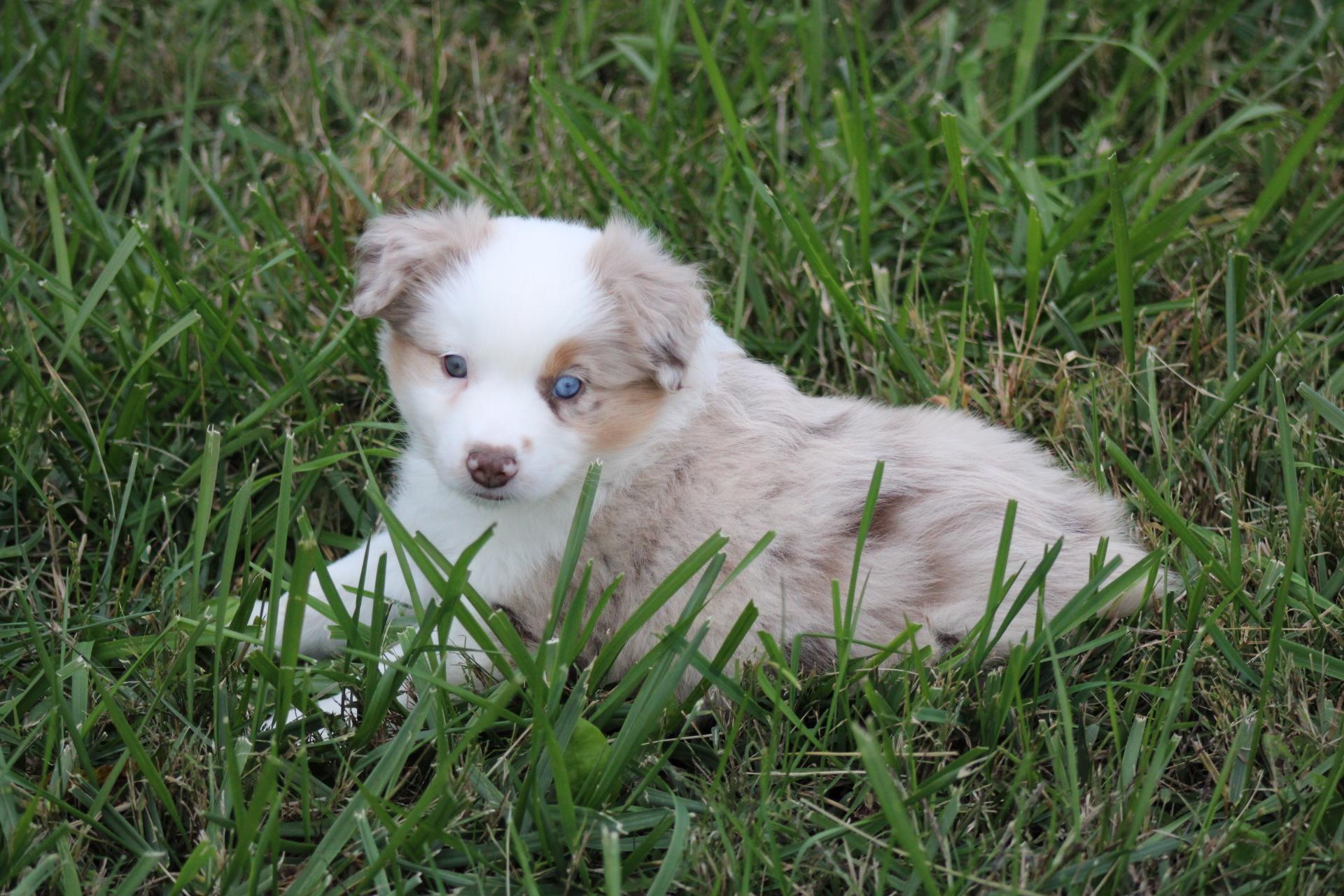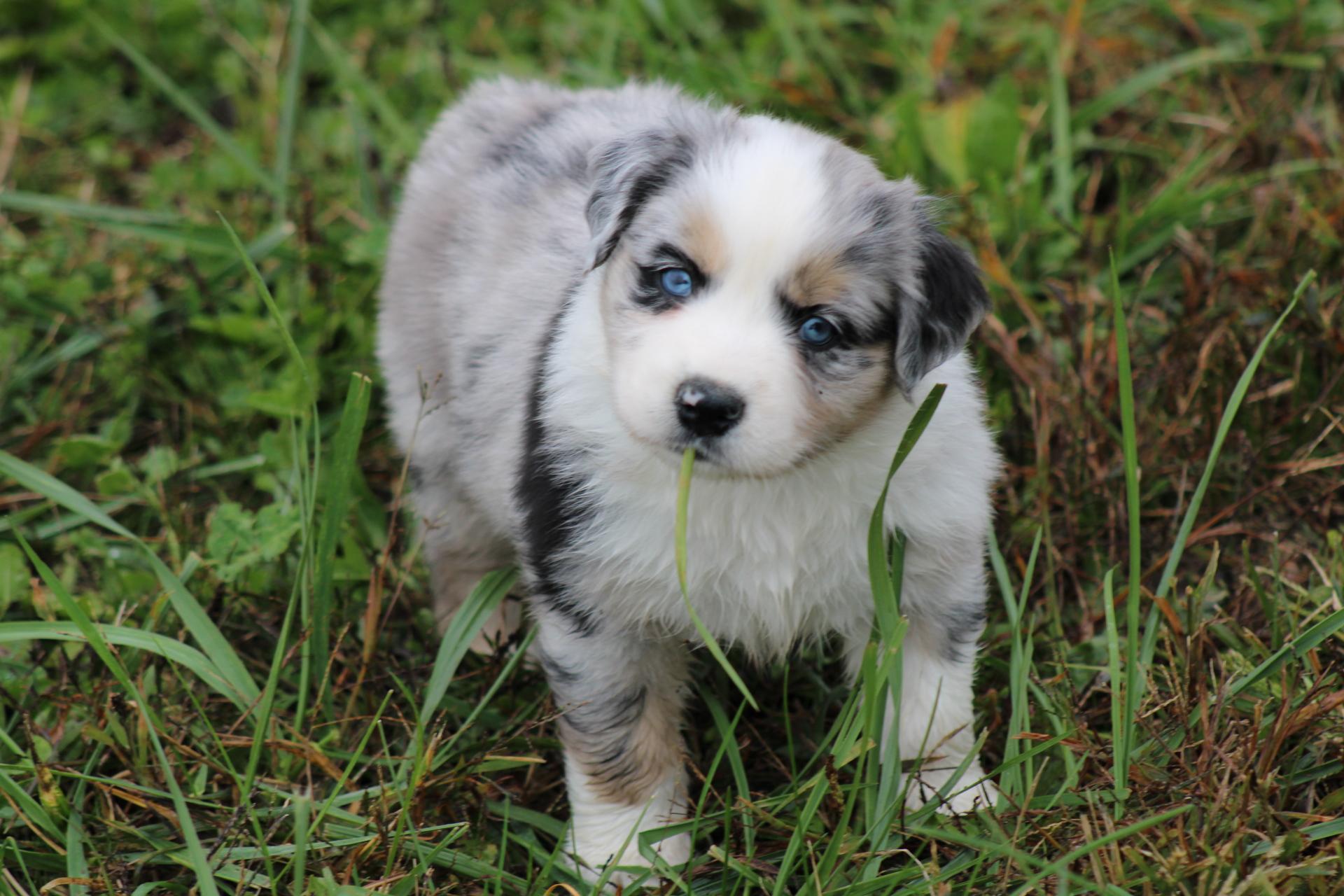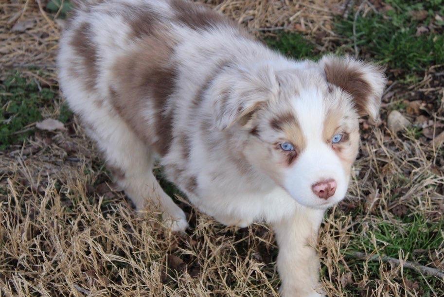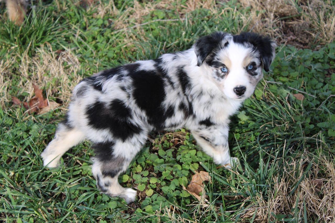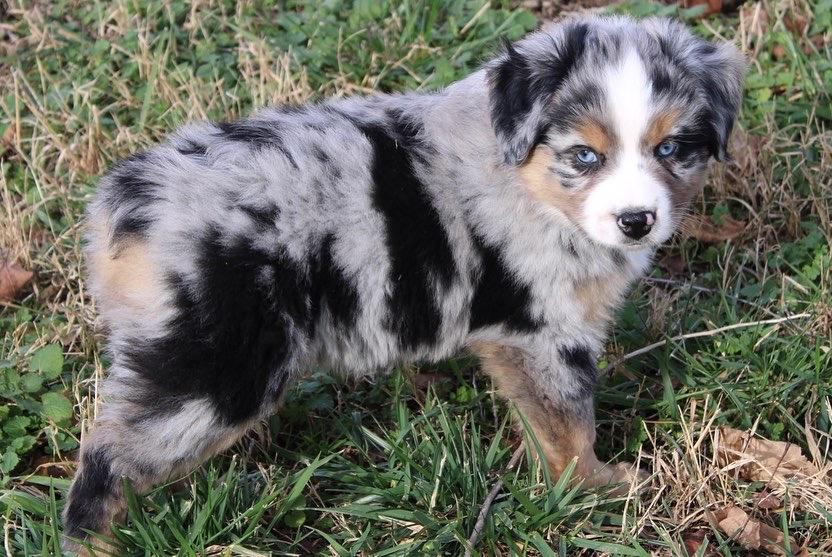 Our Australian Shepherd puppies are blue merle. Colors will vary depending on the parent dogs.