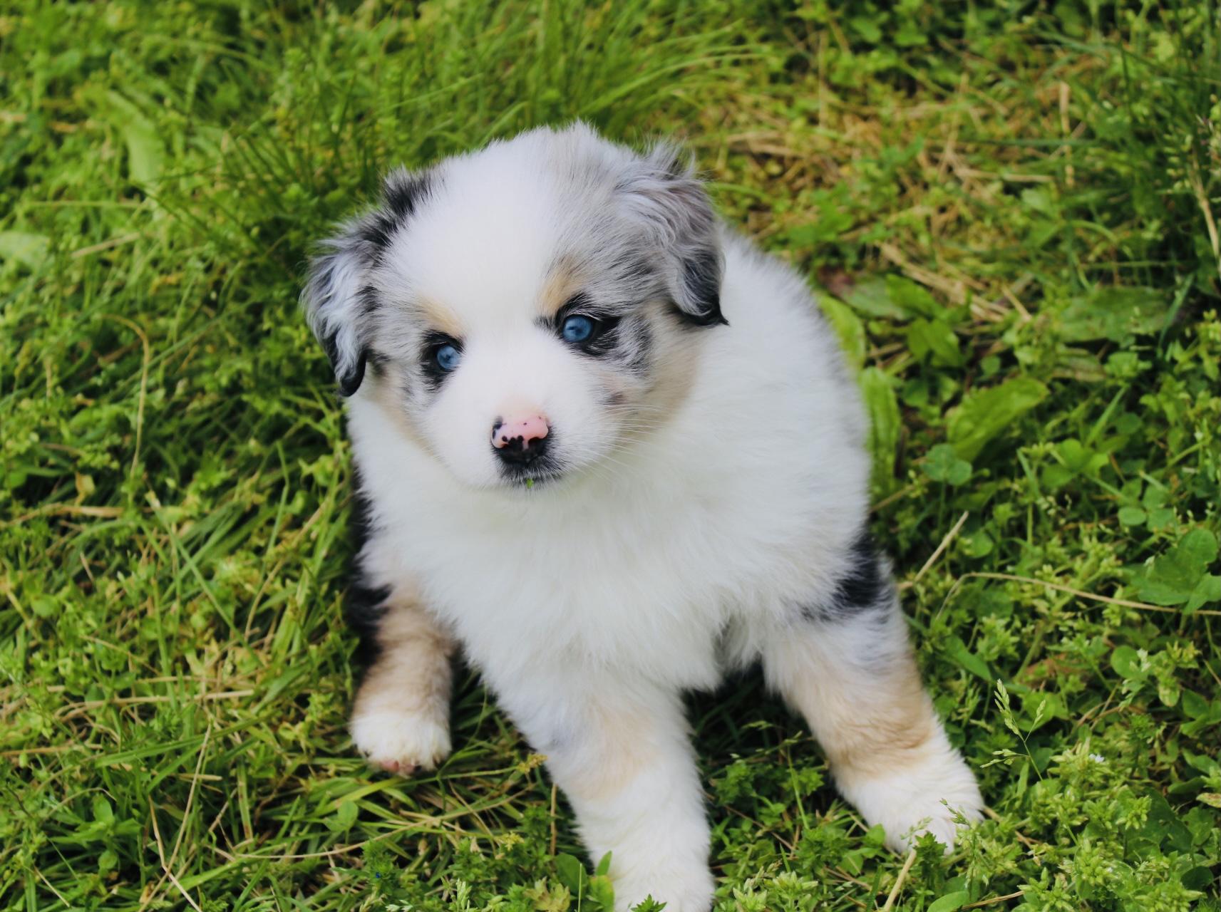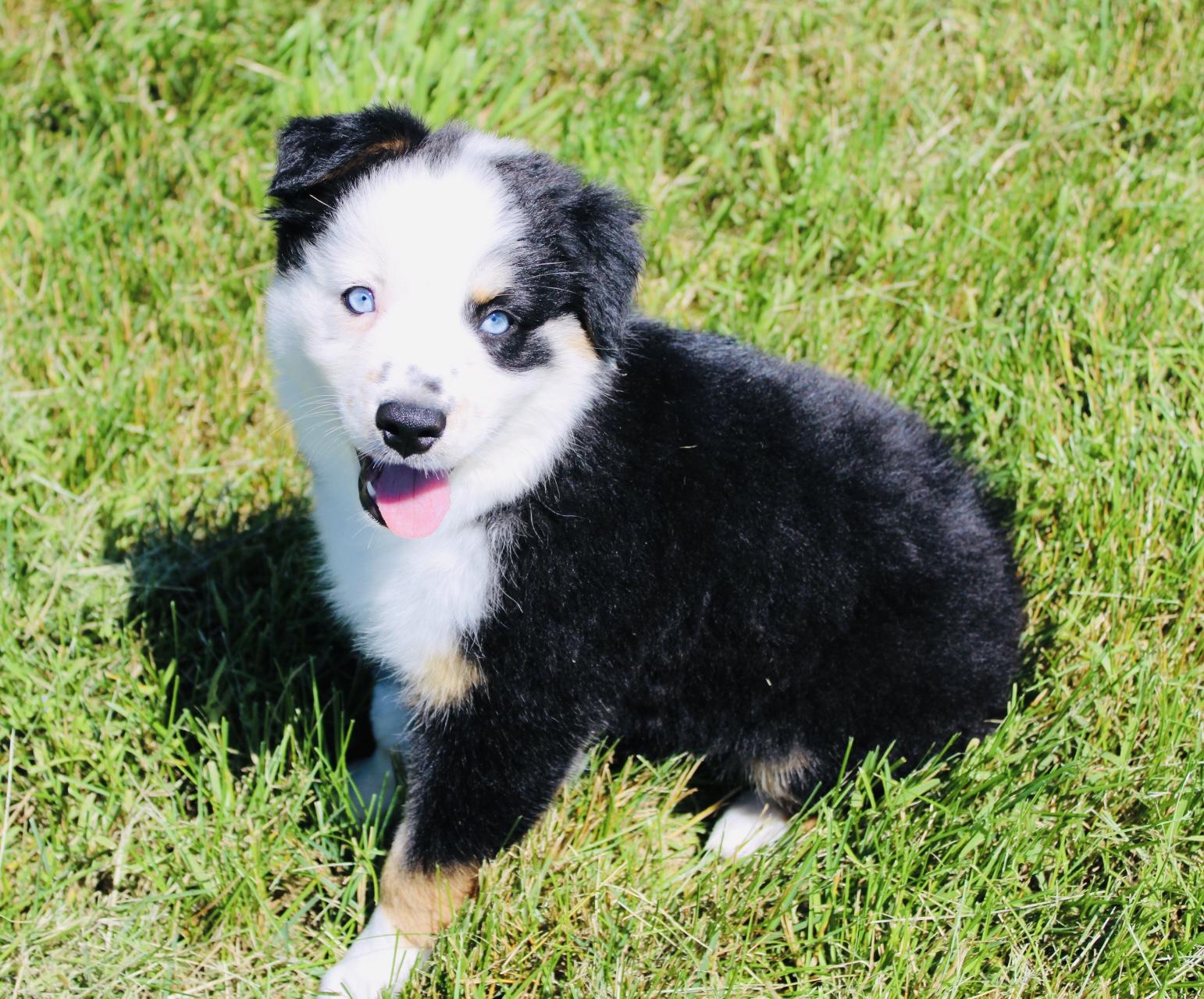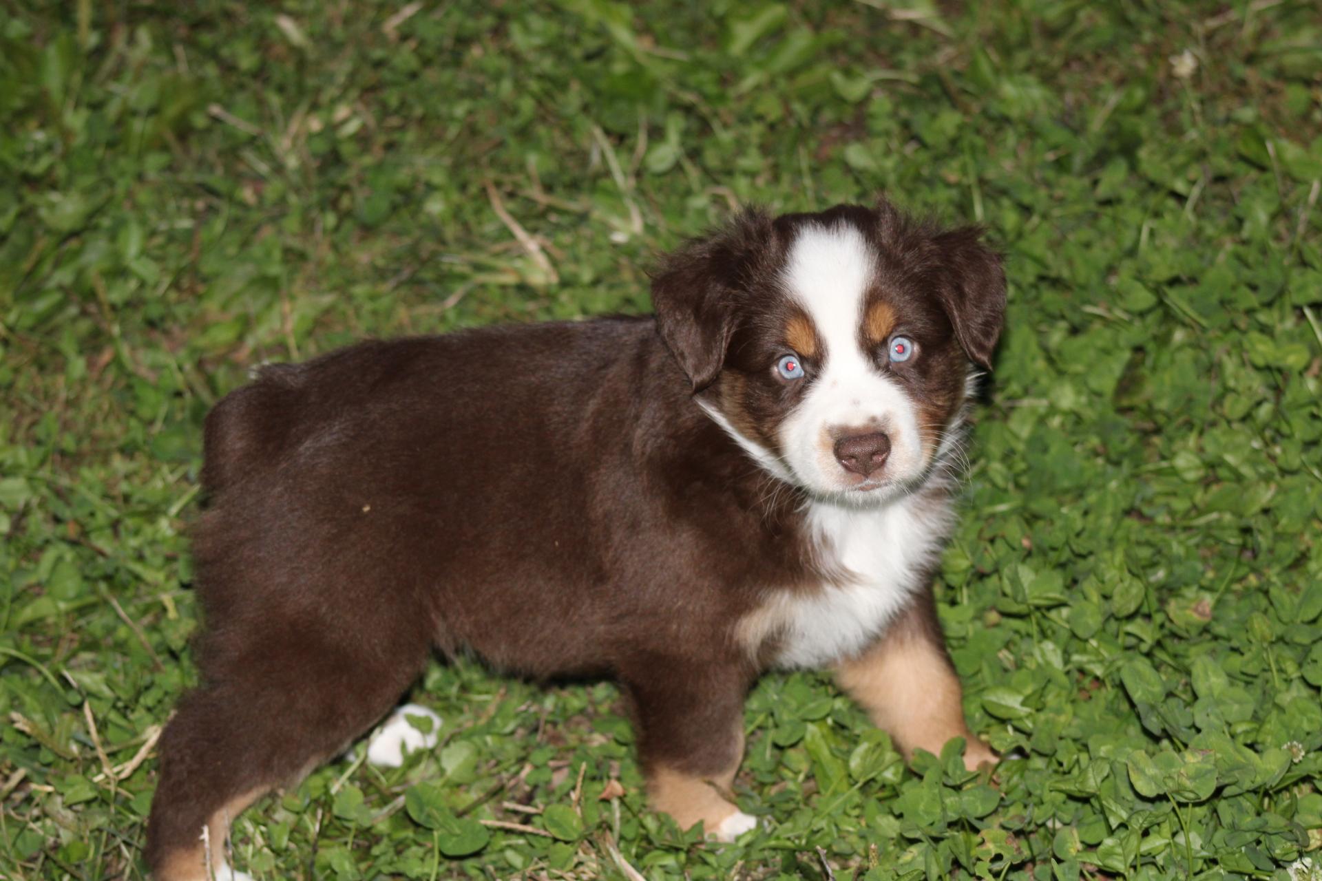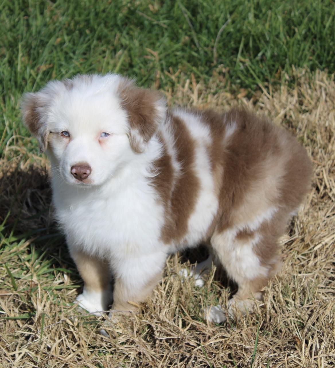 Our Australian Shepherd puppies are blue merle. Colors will vary depending on the parent dogs.