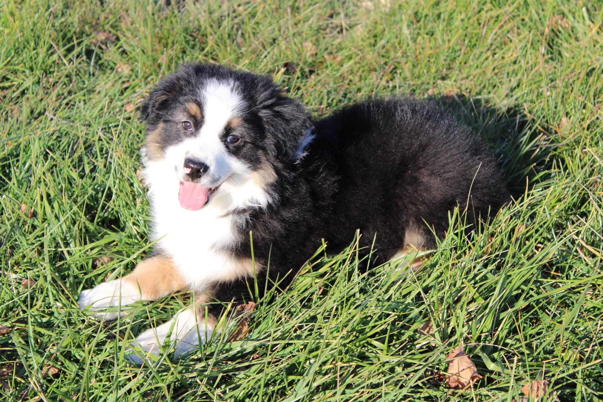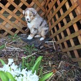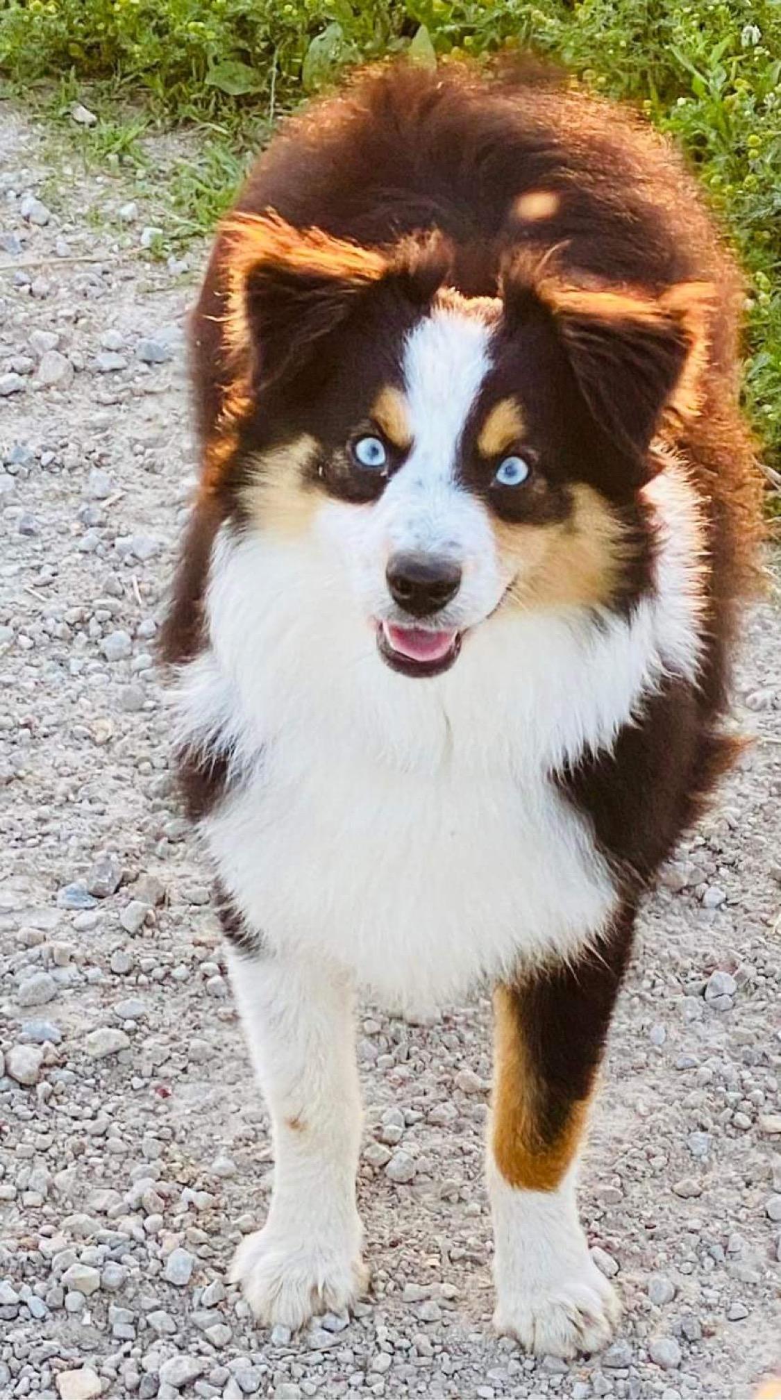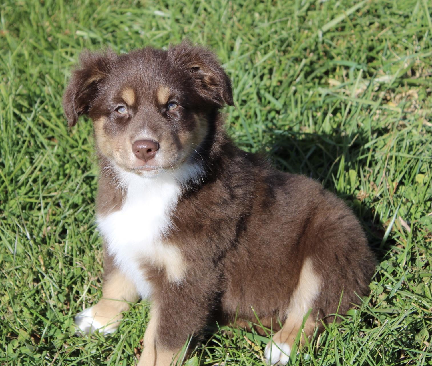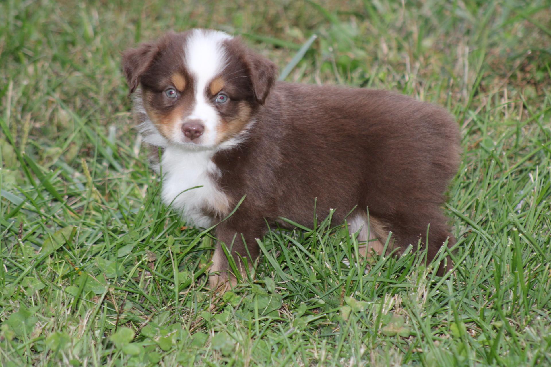 Our Australian Shepherd puppies are blue merle. Colors will vary depending on the parent dogs.