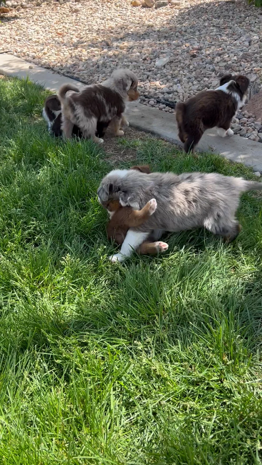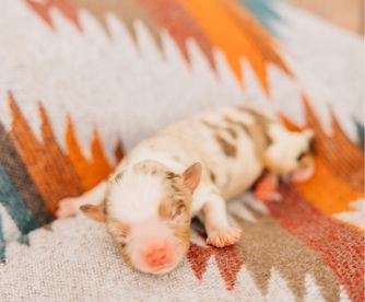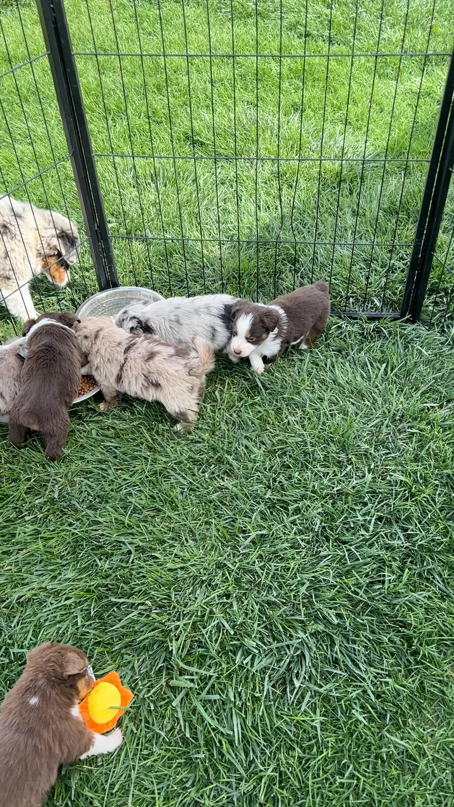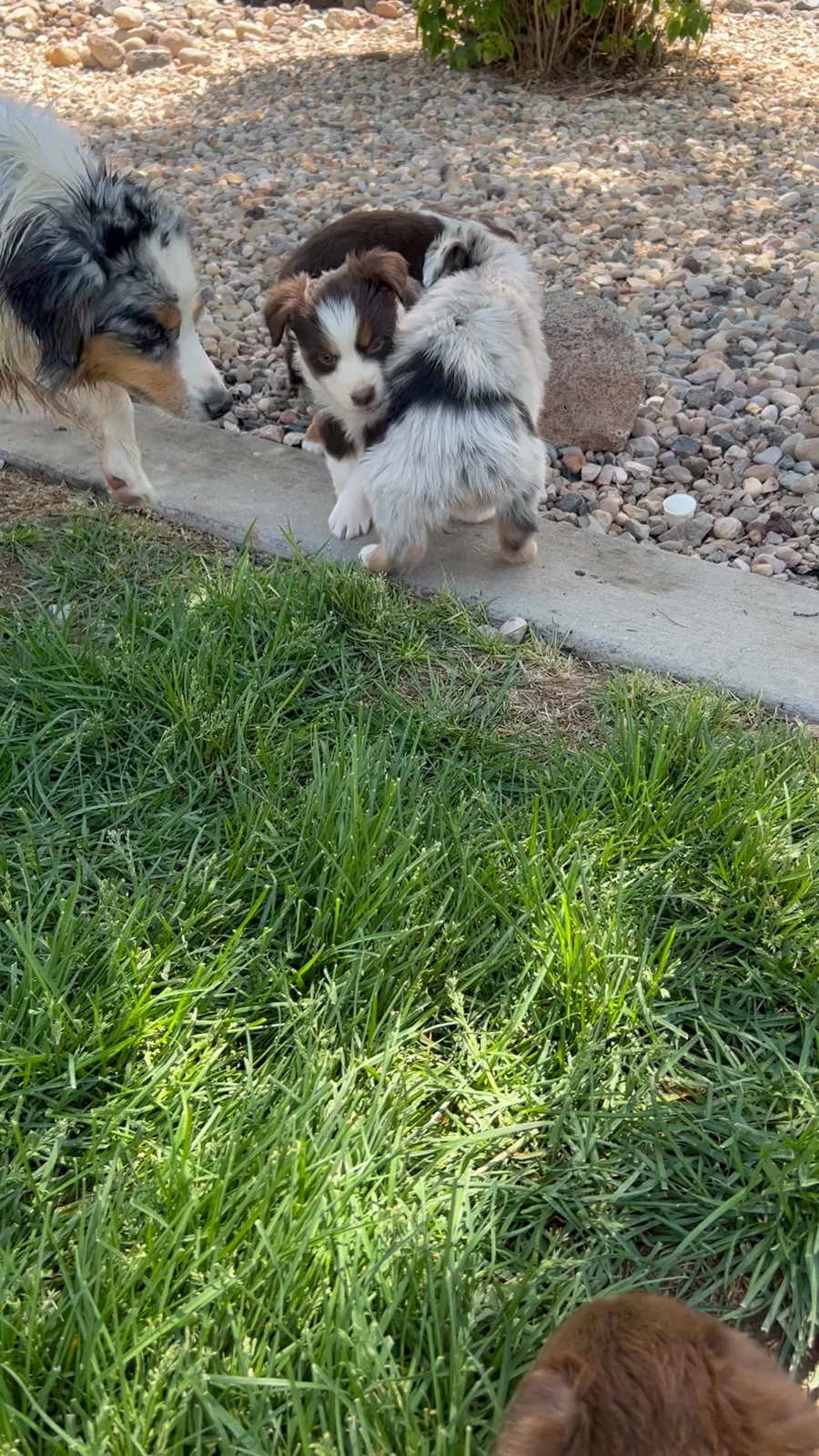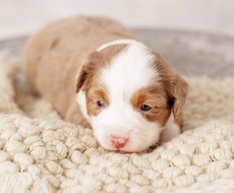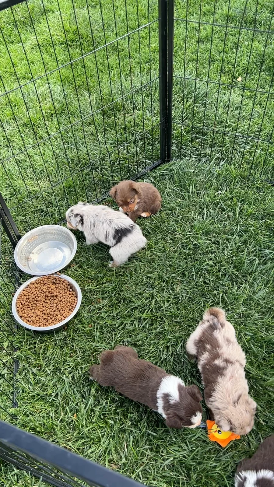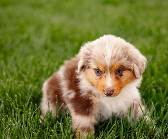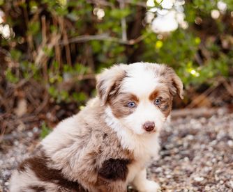 Our Miniature American Shepherd puppies include red tri-color, black tri, red merle, and blue merle. Colors will vary depending on the parent dogs.