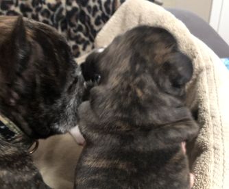 I'm Kathy C., the breeder behind Twisted Oak Frenchies located in California. Our pups are home-raised. We put a lot of care into socializing them so they can transition easily into their new lives. We’re a small-scale program with a big love of French Bulldogs! Our dogs are our passion, and we enjoy spreading the love of French Bulldogs with other individuals and families by responsibly breeding our incredible dogs.