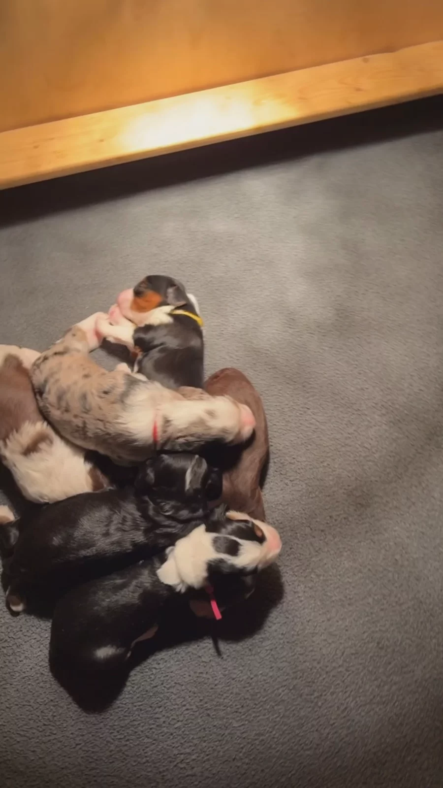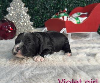 Nomi has one of the best temperaments I've seen in a pup she is so such a sweet girl. Loves playing with her siblings, other pups, and kids. she will gently demand attention, and loves her cuddles.