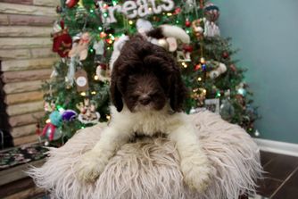 I'm Kaitlin C., the breeder behind Two Ps in a Pod located in North Royalton, OH. We are a small, family-based breeding facility. Our dogs are part of our family and share our home with us. Paisley, our F1b Goldendoodle was our first furry family member. She was so amazing with her temperament, quick wit, and cute, cuddly self that we decided we wanted to share these traits with others by breeding her.