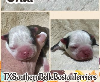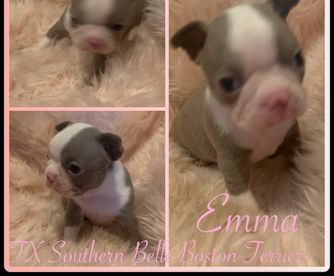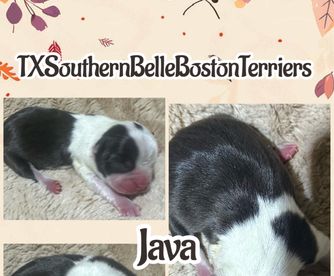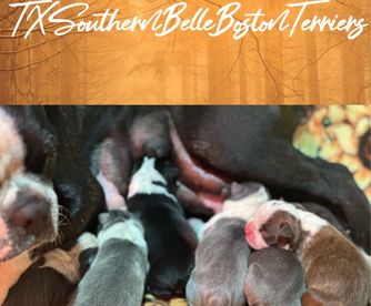 I'm Angela B., the breeder behind TX Southern Belle Bostons located in Brazos Point, TX. We are pet owners first and foremost. All of our puppies are raised as members of our family until they’re ready to join yours. Every puppy we raise is adored and a part of the family from birth. Our puppies will complete your home, your family, and your heart!