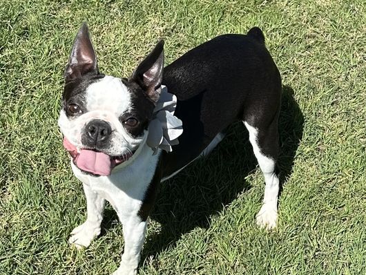 Charlie is a female Boston Terrier. Carefully selected as a great representative of her breed, Angela decided to make her part of their program. Angela has passed Good Dog’s screening process, which involved a review of their breeding practices, environment, and the mental and physical health of their dogs.