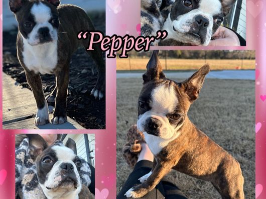 Pepper is a female Boston Terrier. Carefully selected as a great representative of her breed, Angela decided to make her part of their program. Angela has passed Good Dog’s screening process, which involved a review of their breeding practices, environment, and the mental and physical health of their dogs.